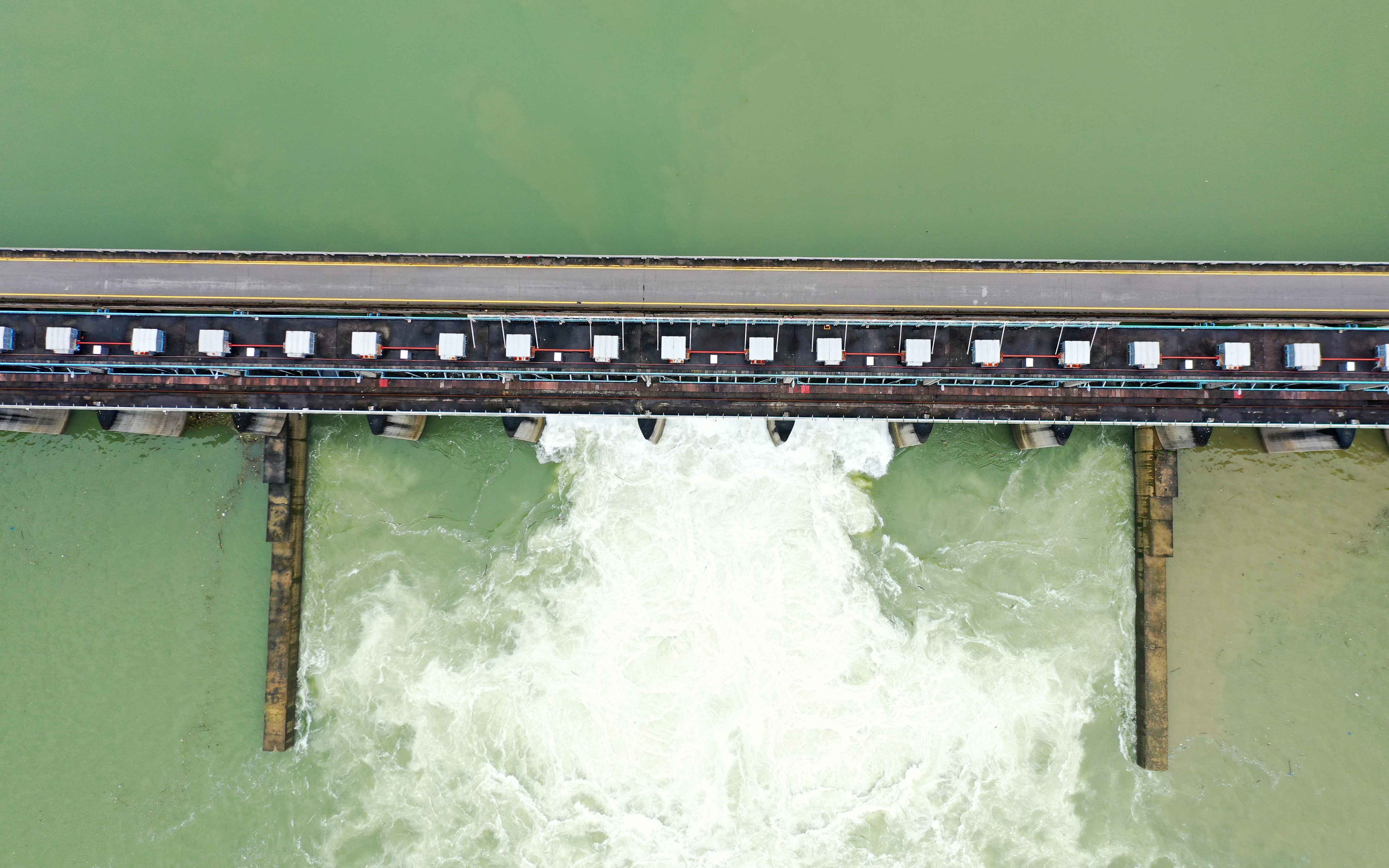 6月17日,广西柳州,珠江上游融江融安县浮石水电站开闸放水,为后续洪水清腾库容。图/IC photo