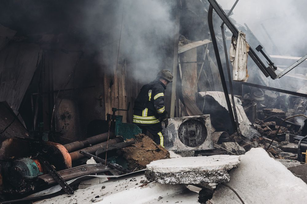 5月27日,消防员在顿涅茨克地区巴赫穆特工作。(新华社发,迭戈·埃雷拉摄)