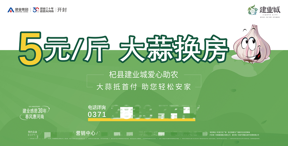 6月20日,建业集团旗下项目“大蒜换房”等营销海报走红。 图/杞县建业城公众号