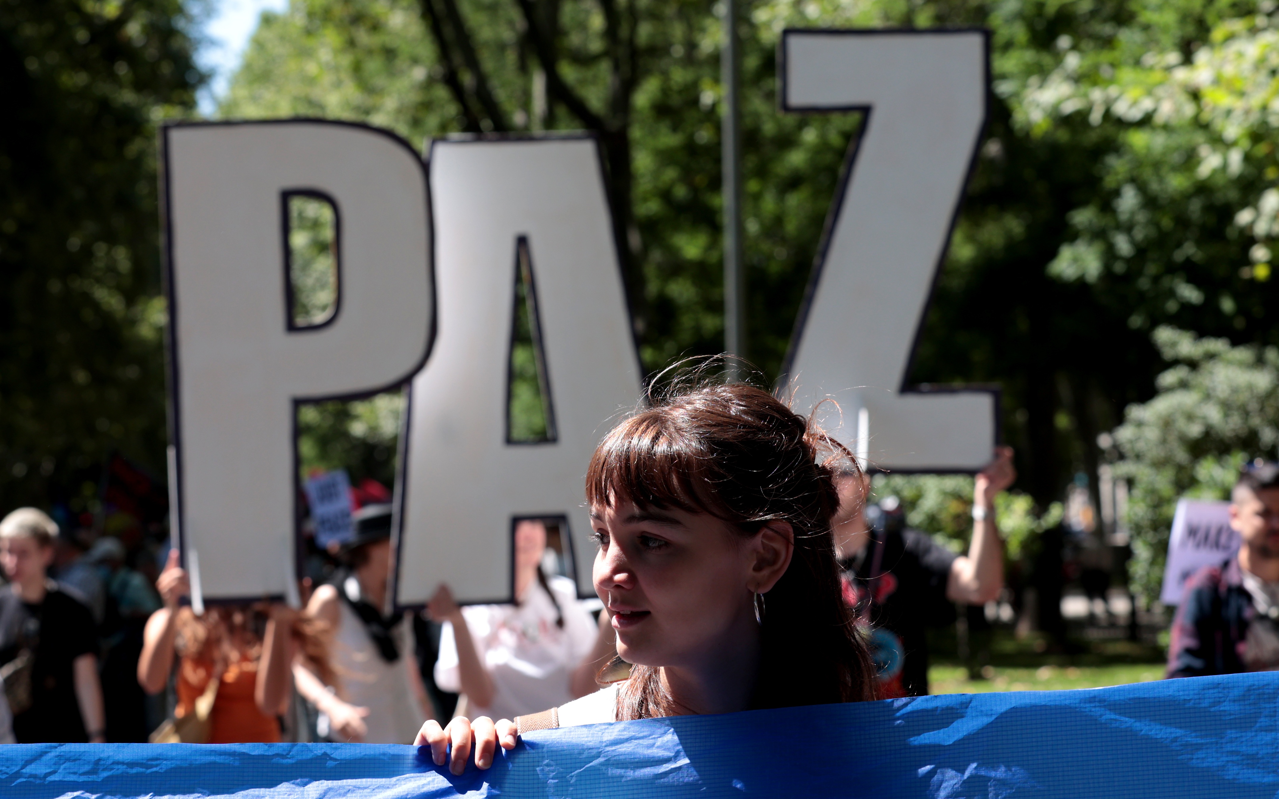 ▲6月26日,数千人在西班牙首都马德里市中心参加反对北约、呼吁世界和平大游行。图/新华社