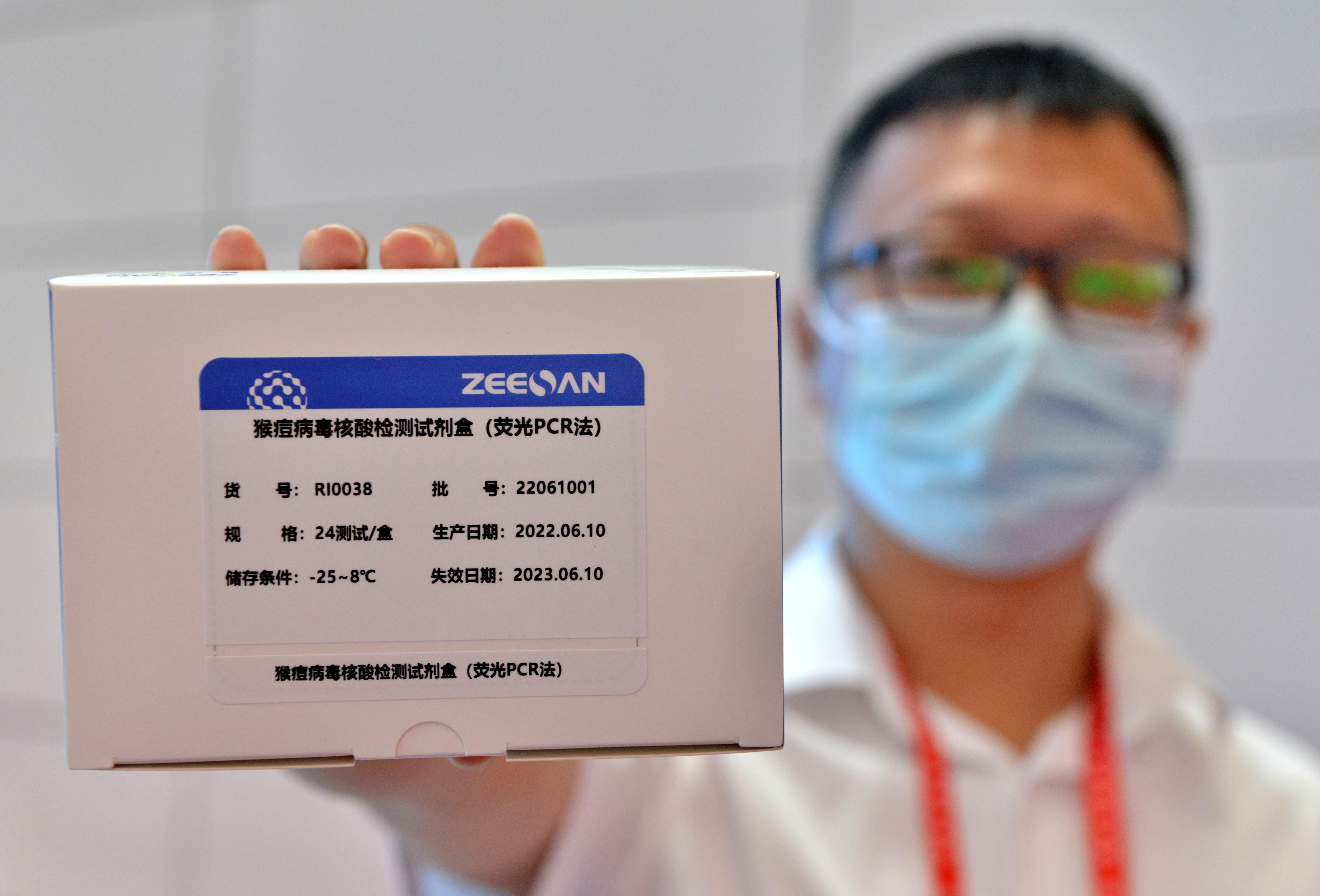 6月19日,福建福州,工作人员展示猴痘病毒核酸检测试剂盒。张斌 摄/IC photo