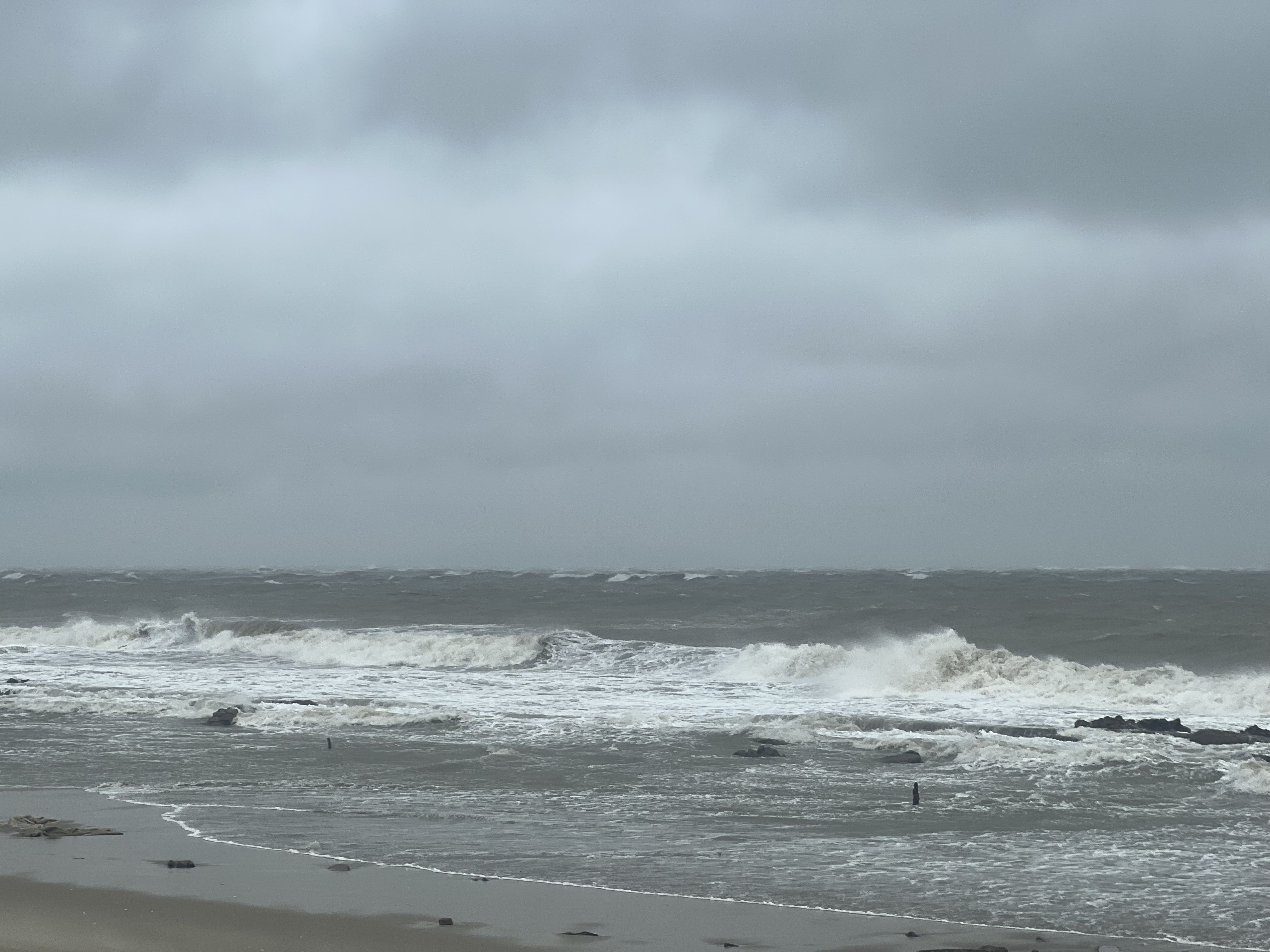 3名广东海洋大学大二学生从湛江一路驱车跟到茂名,在中国第一滩景区东侧追到台风眼。