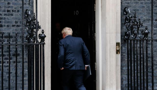 7月7日,英国首相鲍里斯·约翰逊在伦敦唐宁街10号门前发表讲话后返回室内。图/新华社