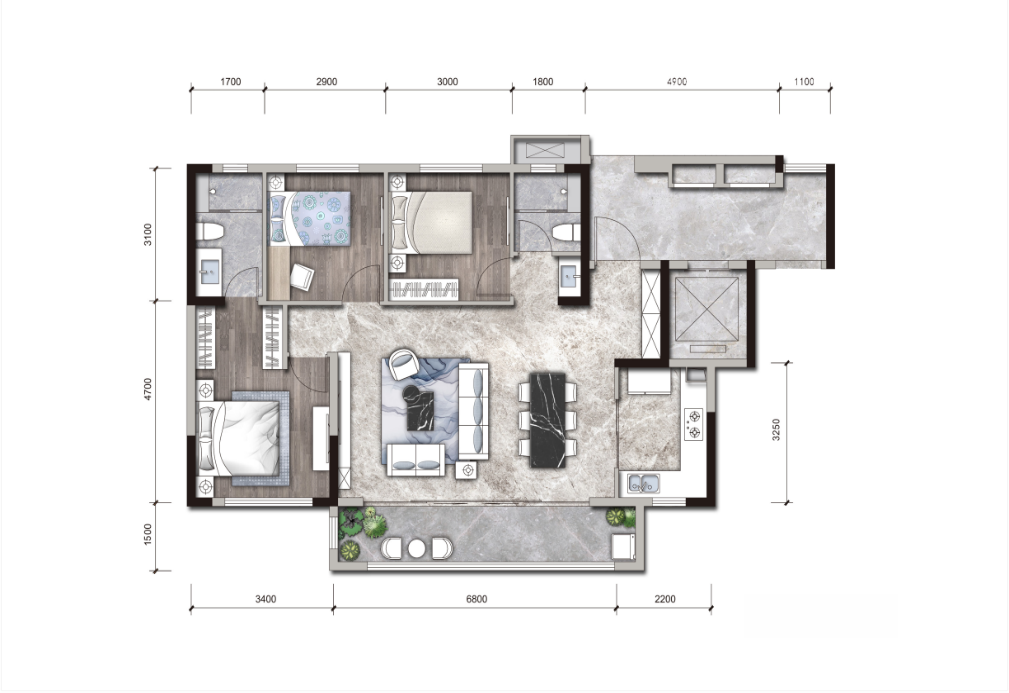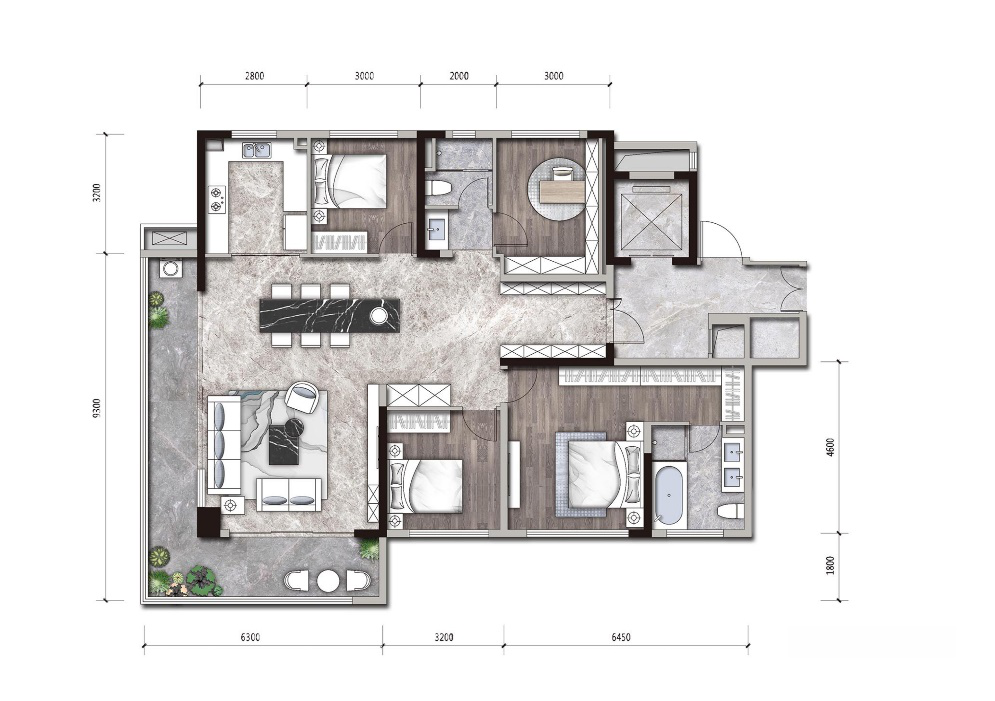 建面约118㎡三房两厅两卫