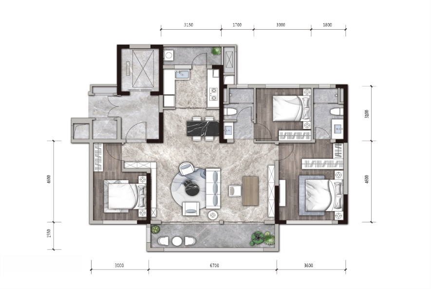 建面约188㎡四房两厅两卫