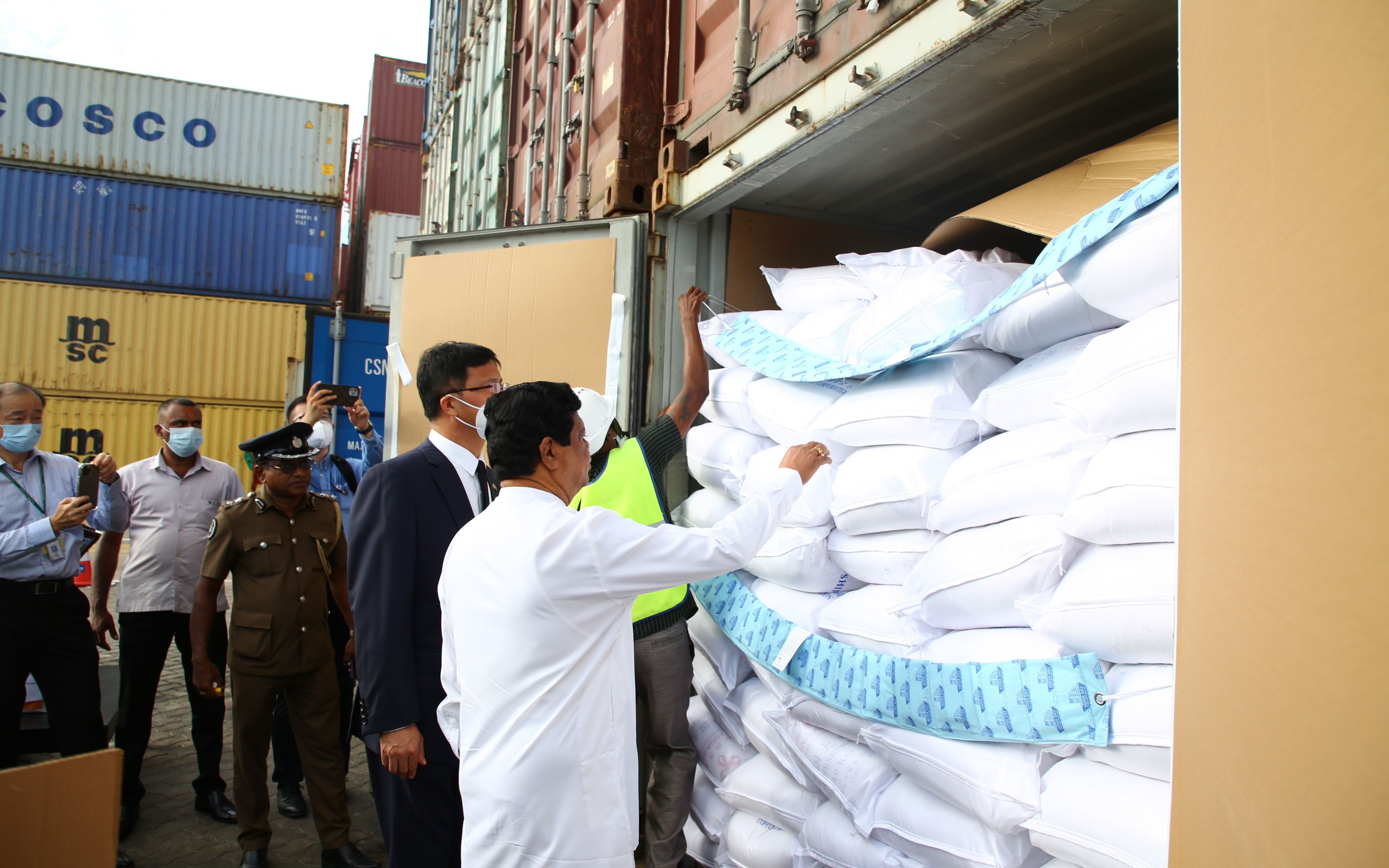 ▲6月28日,中国紧急援助斯里兰卡的一批粮食运抵科伦坡国际集装箱码头。图/新华社