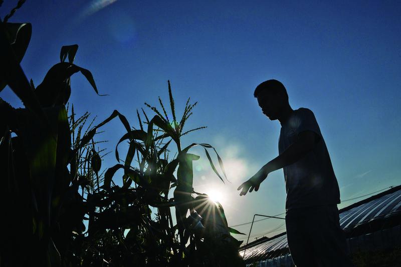 6月24日,通州区永乐店镇西槐庄村,中国农业大学的研究生宁国法走在玉米地里。新京报记者 王子诚 王飞 摄