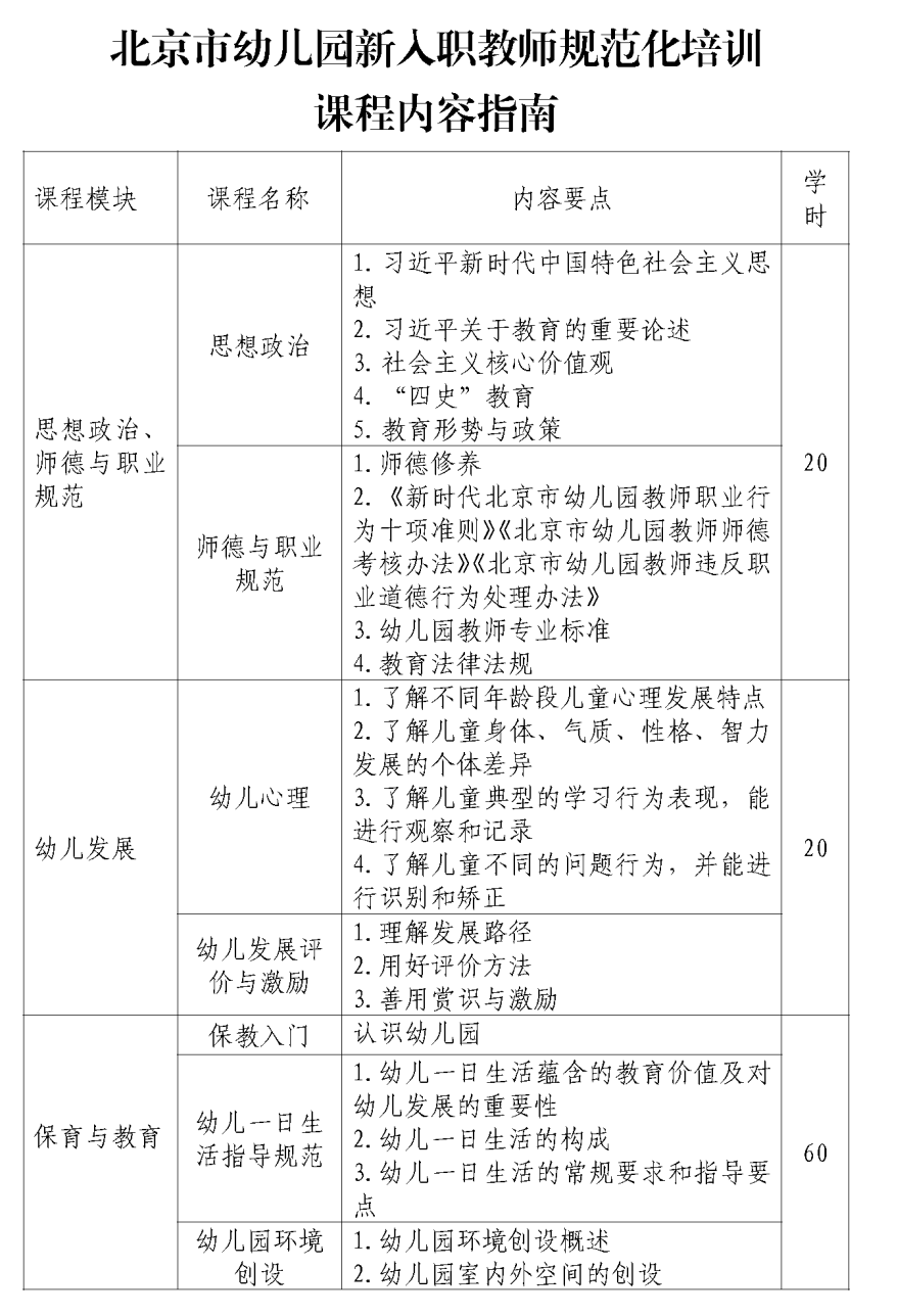 北京市幼儿园新入职教师规范化培训对象为入职一年以内的教师。