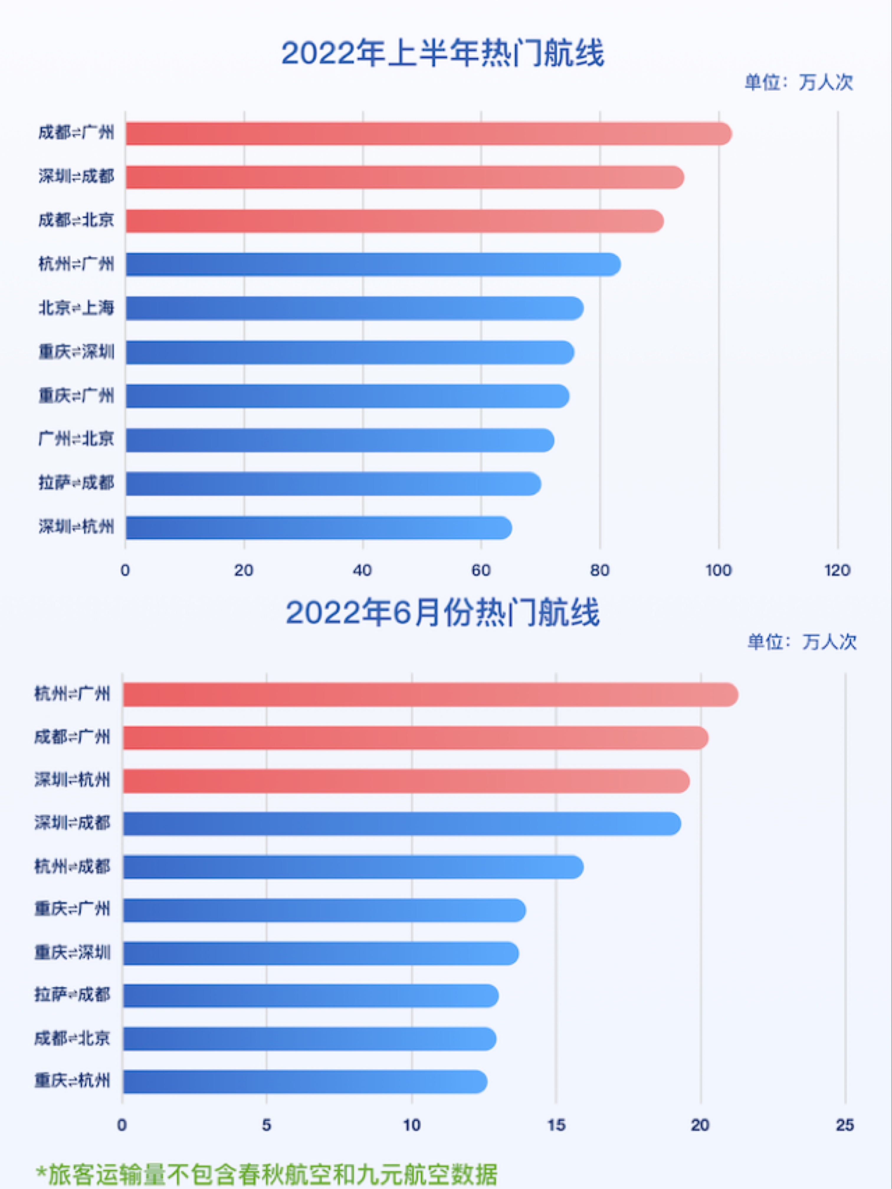 2022年上半年及6月热门航线。
