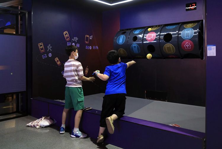 小朋友玩“数据投手”。
