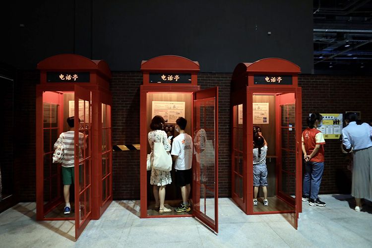 “Hz行动——无线电主题打卡闯关特展”将于7月15日在中国科技馆开幕。本次展览以原创IP《无线电未来规划局》为故事线,观众将会随机以科学家、守护者、工程师的角色沉浸式体验一段无线电探秘之旅。图为观众通过电话亭接收角色任务。