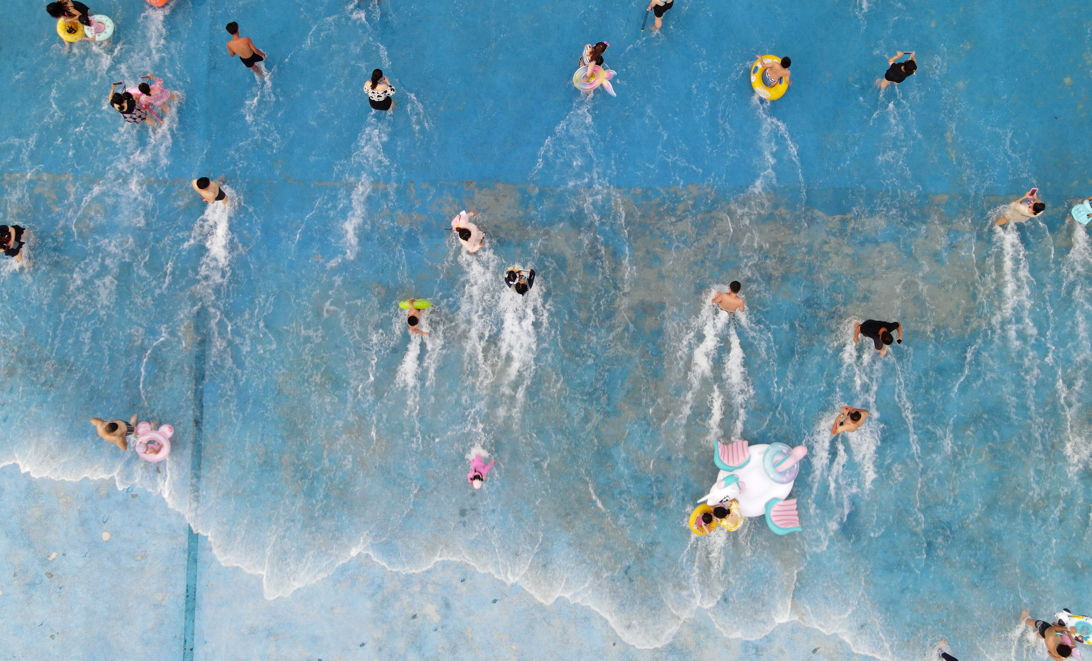 7月12日,江苏扬州,气温持续攀升,众多市民游客来到扬州市水上乐园戏水消暑。图/IC photo