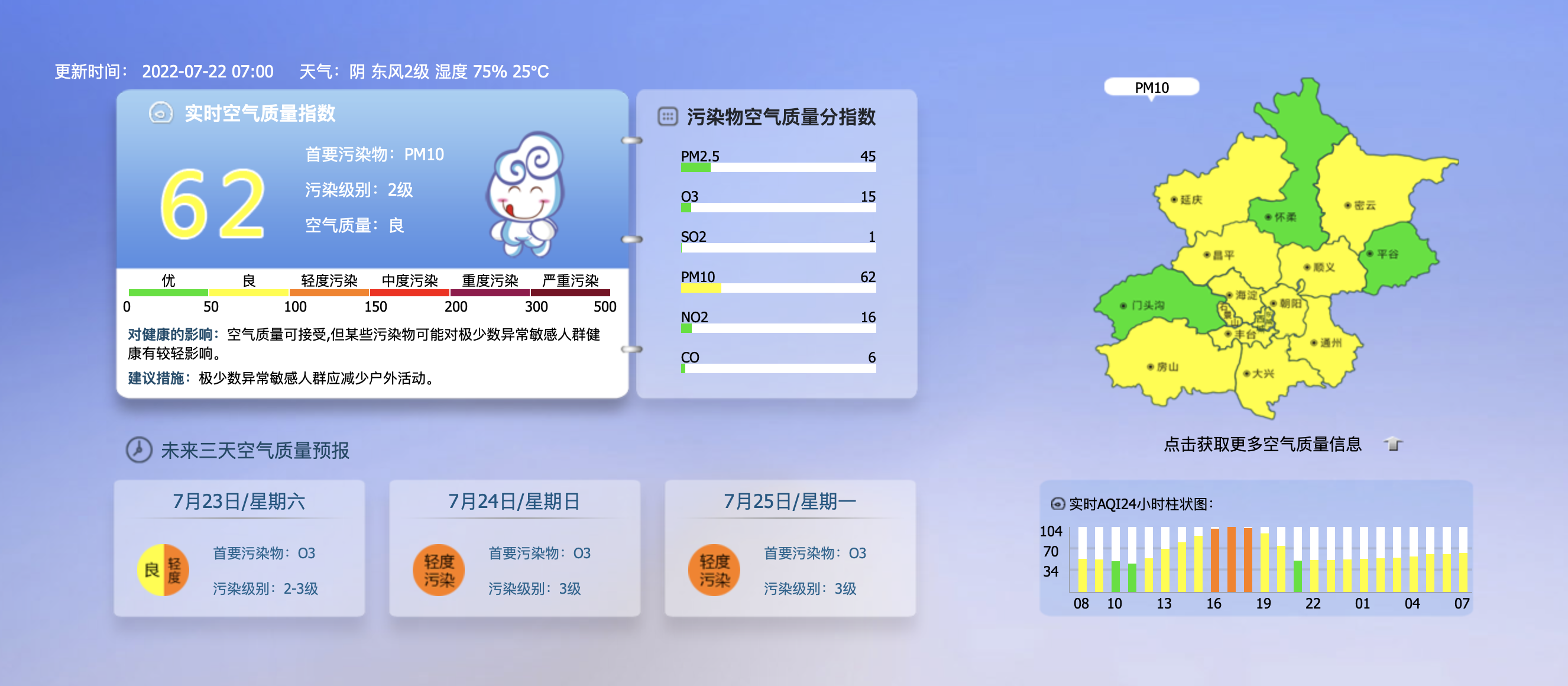 据北京市生态环境监测中心今早7时数据,目前实时空气质量指数62,污染级别2级,首要污染物PM10,空气质量良。