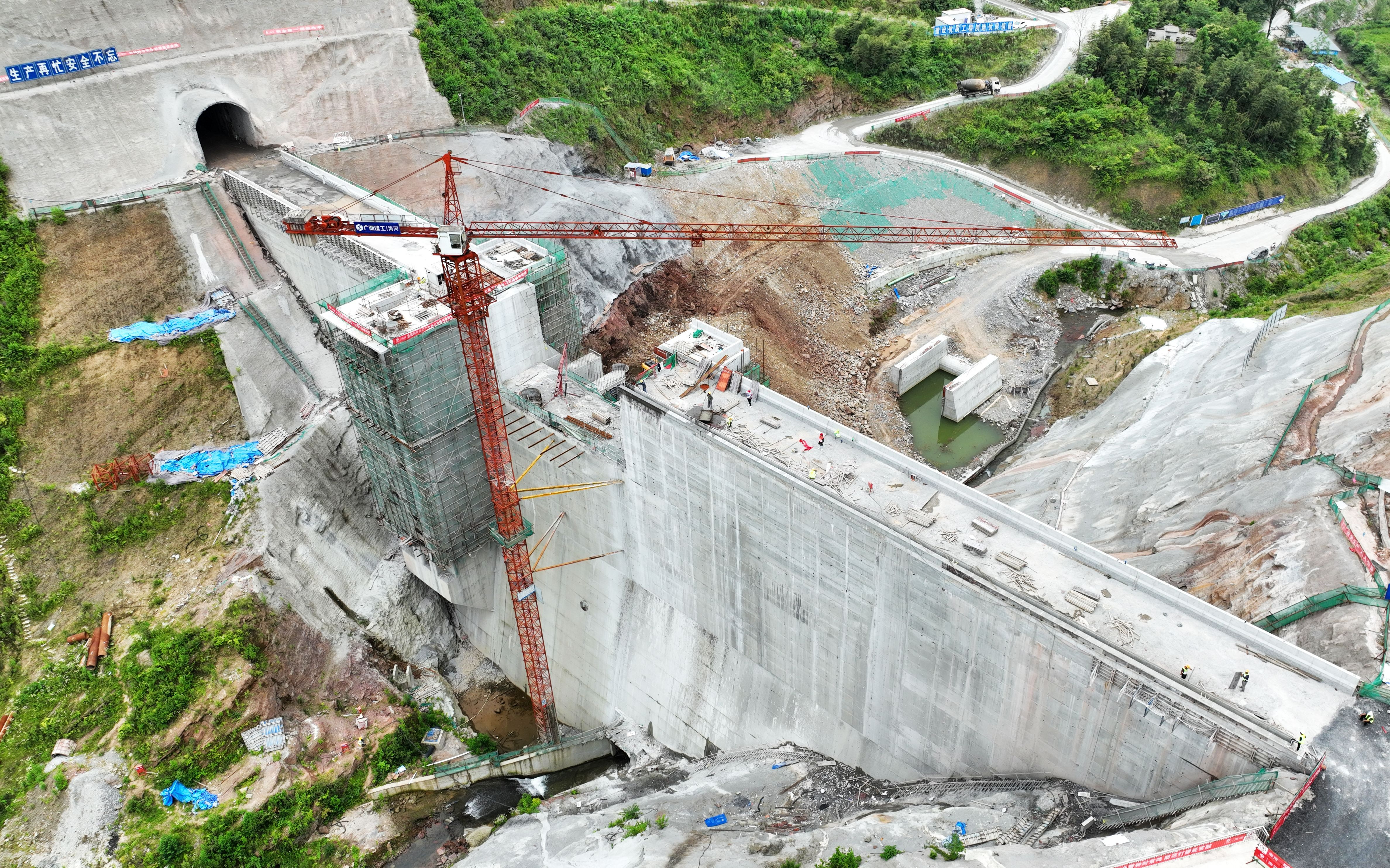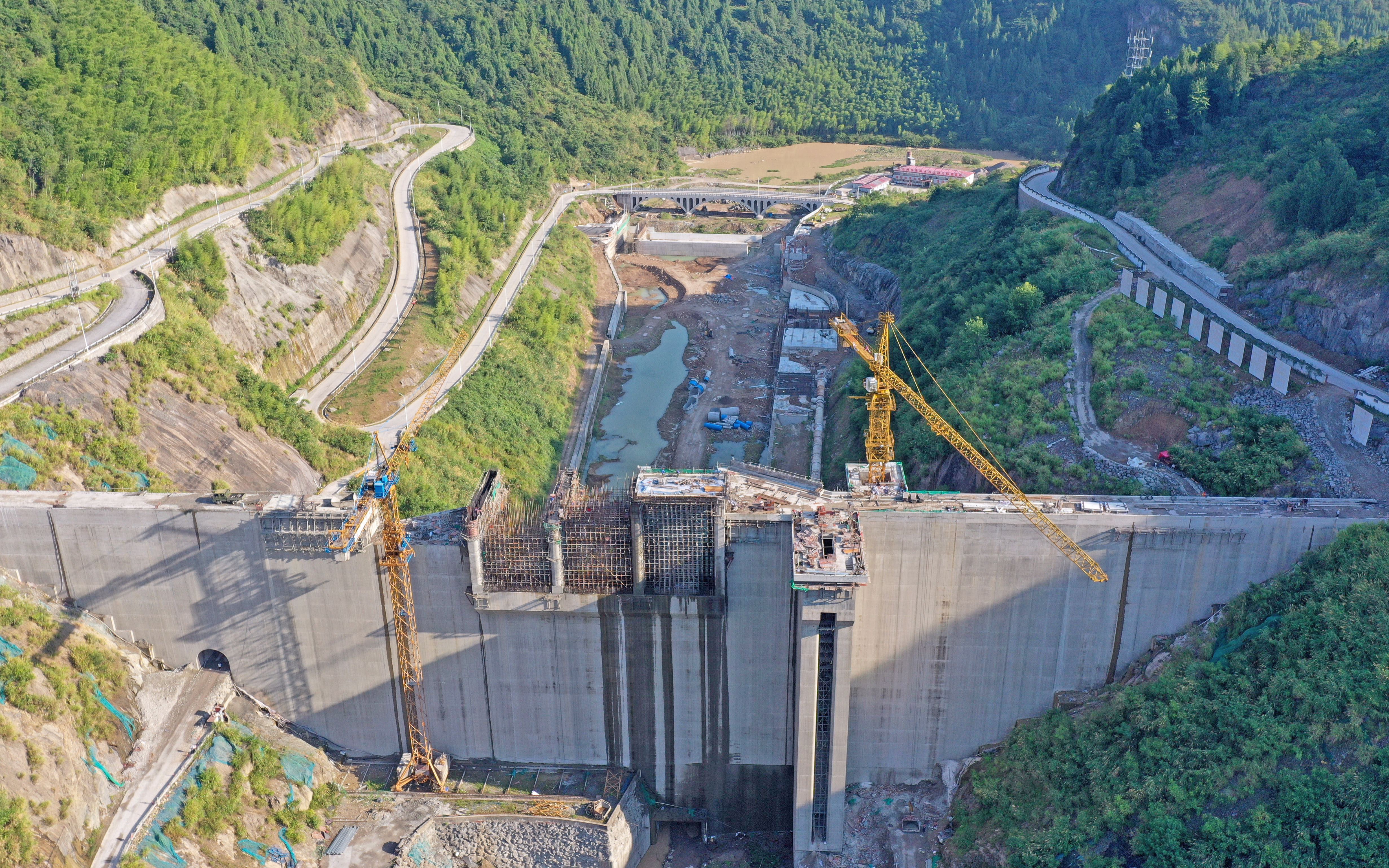 6月17日,重庆市酉阳土家族苗族自治县桃花源水库工程建主坝设施工现场。图/IC photo