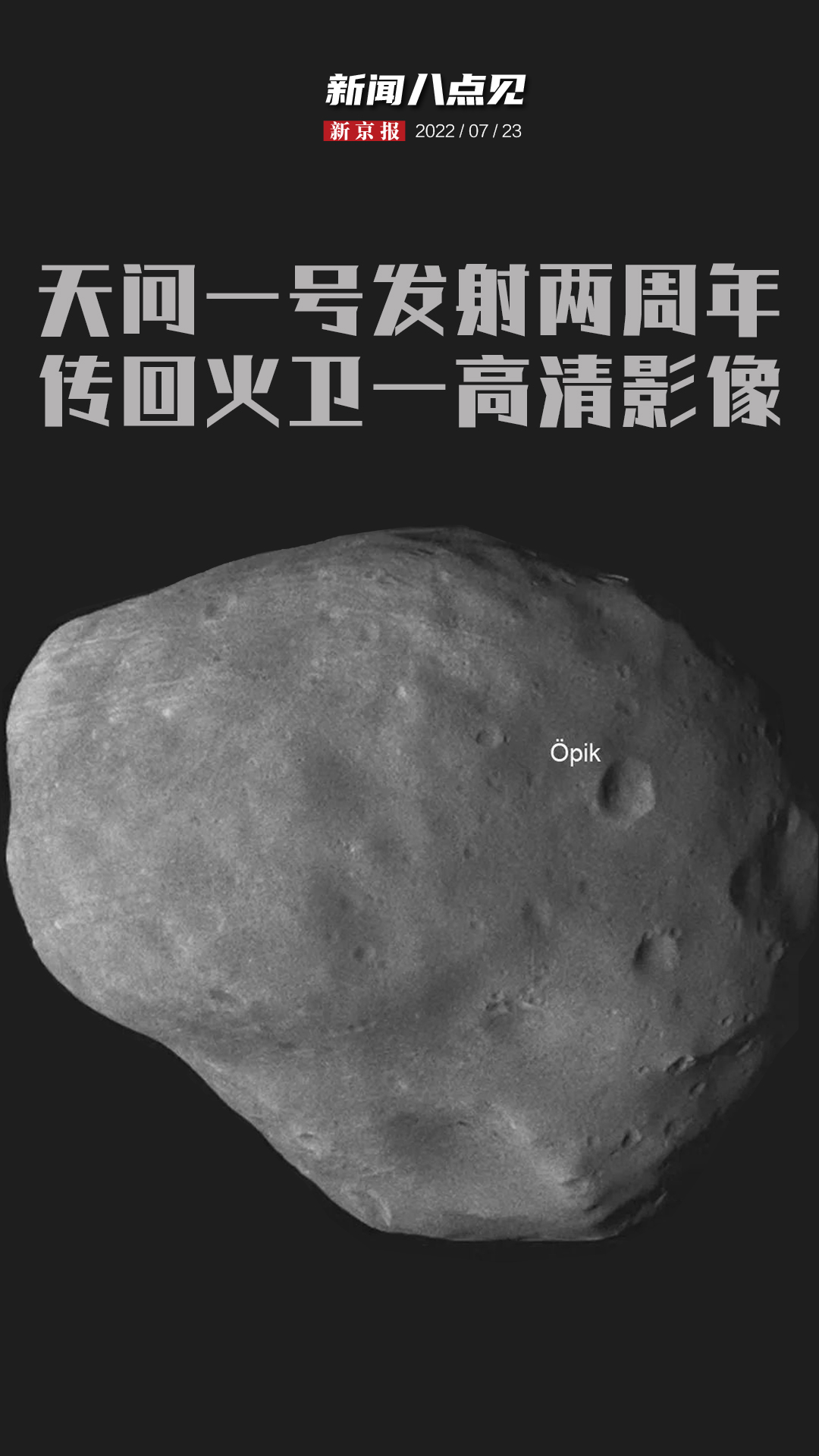 今天是天问一号任务发射两周年的日子,环绕器传回火卫一影像。近期,天问一号运行团队抓住环绕器与火卫一距离较近的时机,利用高分辨率相机对火卫一成像,获得了“满月”状态的清晰影像。