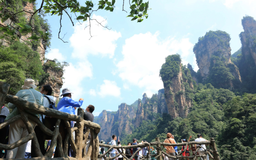 ▲7月8日,游人在湖南张家界市武陵源景区游玩。 图/新华社