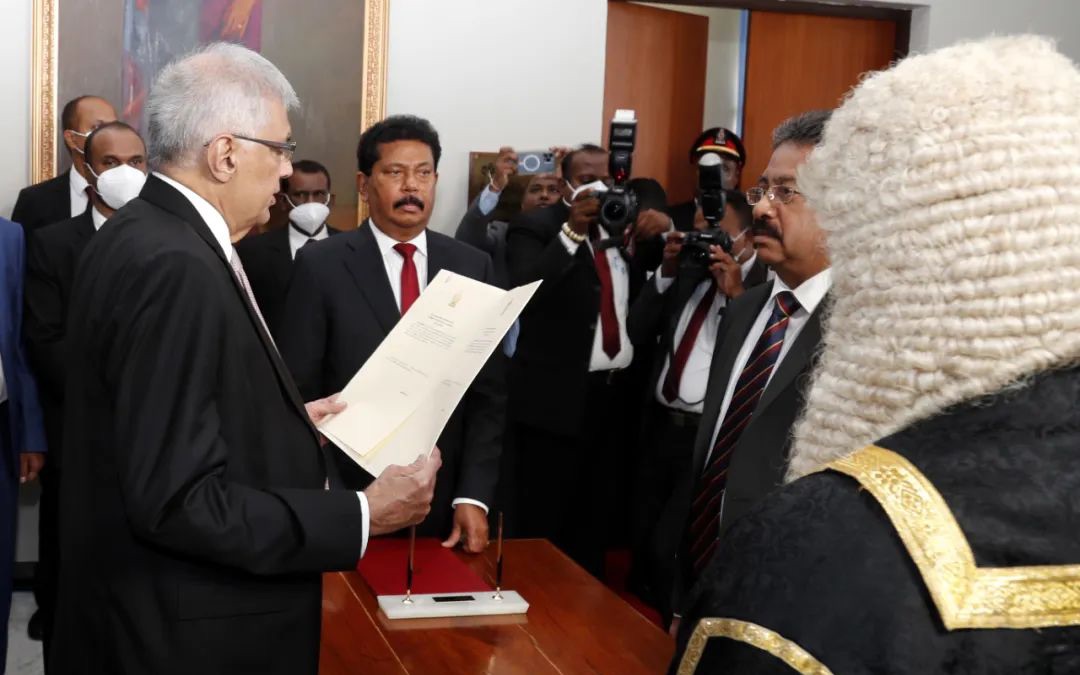当地时间2022年7月21日,斯里兰卡科伦坡,维克拉马辛哈宣誓就任斯里兰卡新总统。图/IC photo