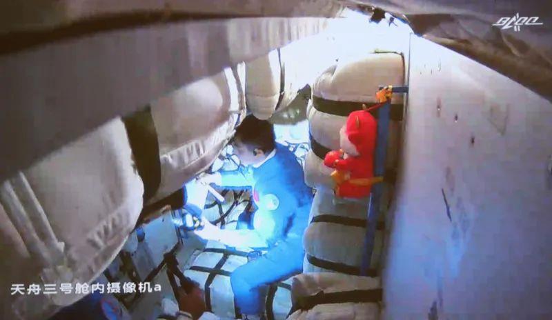 2021年10月17日9时50分,神舟十三号航天员乘组成功开启货物舱舱门,顺利进入天舟三号货运飞船;航天员乘组按计划开展货物转运等相关工作。