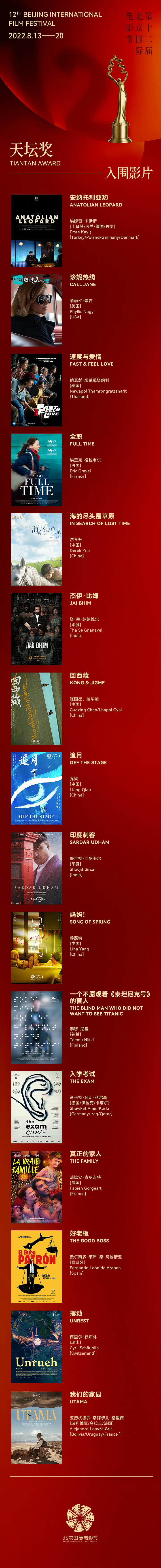 新京报讯(记者周慧晓婉)7月28日,第十二届北京国际电影节新闻发布会召开,会上宣布本届北影节将于8月13日至8月20日举办,同时“天坛奖”入围影片公布,入围影片包括《海的尽头是草原》《妈妈!》《追月》《回西藏》等影片。