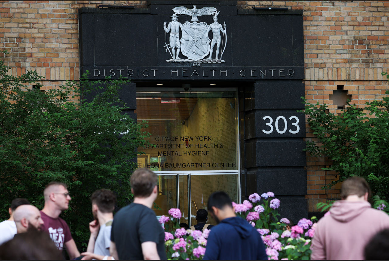 当地时间2022年6月23日,美国纽约,纽约市当日开始提供猴痘疫苗接种服务,民众在接种诊所外排队。图/IC photo