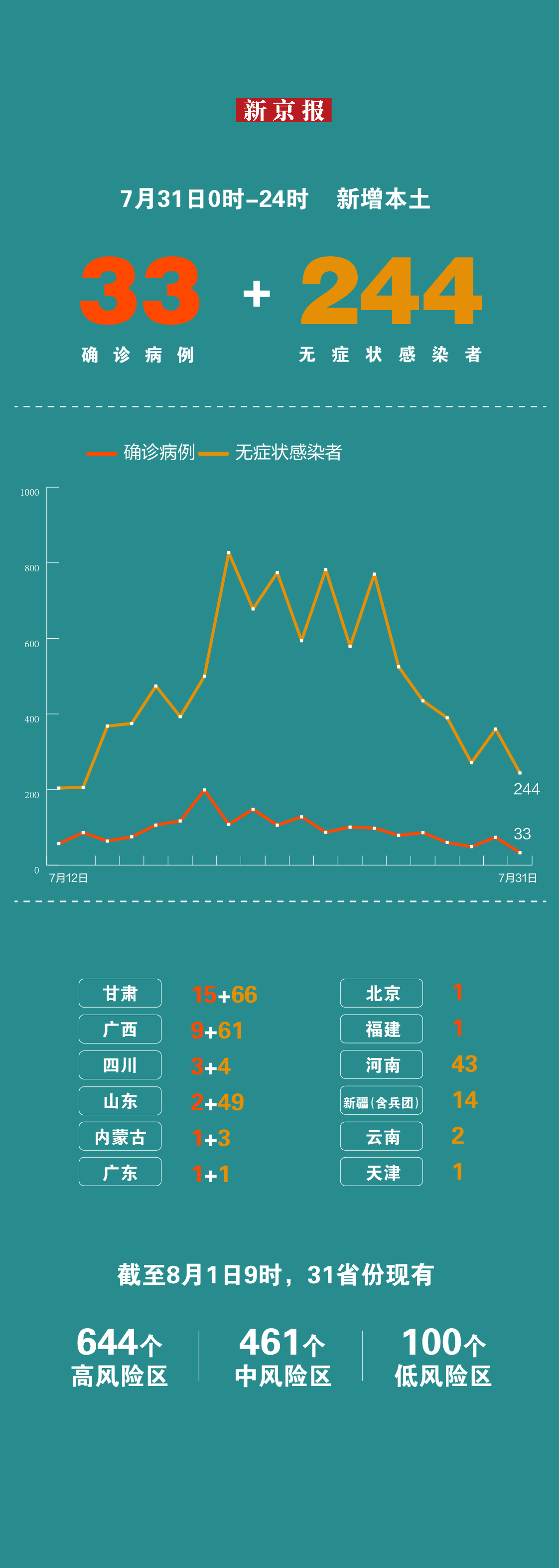 7月31日新增本土“33+244” 一图看懂感染者分布