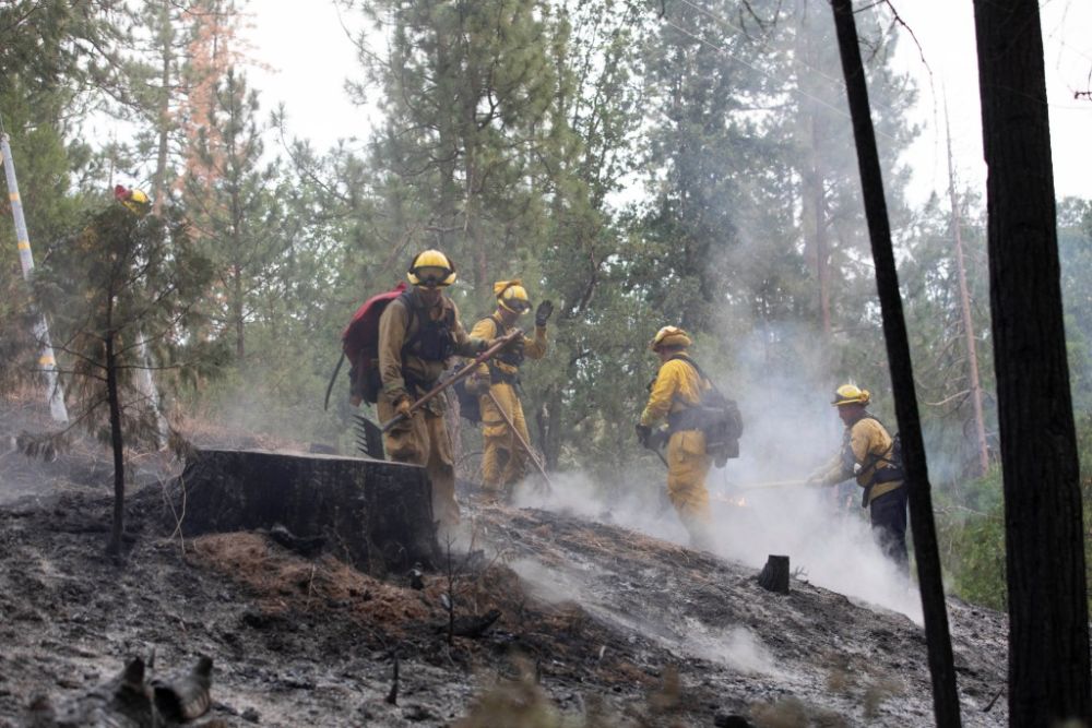 7月25日,消防员在美国加利福尼亚州马里波萨县参与灭火。新华社发(李建国摄)