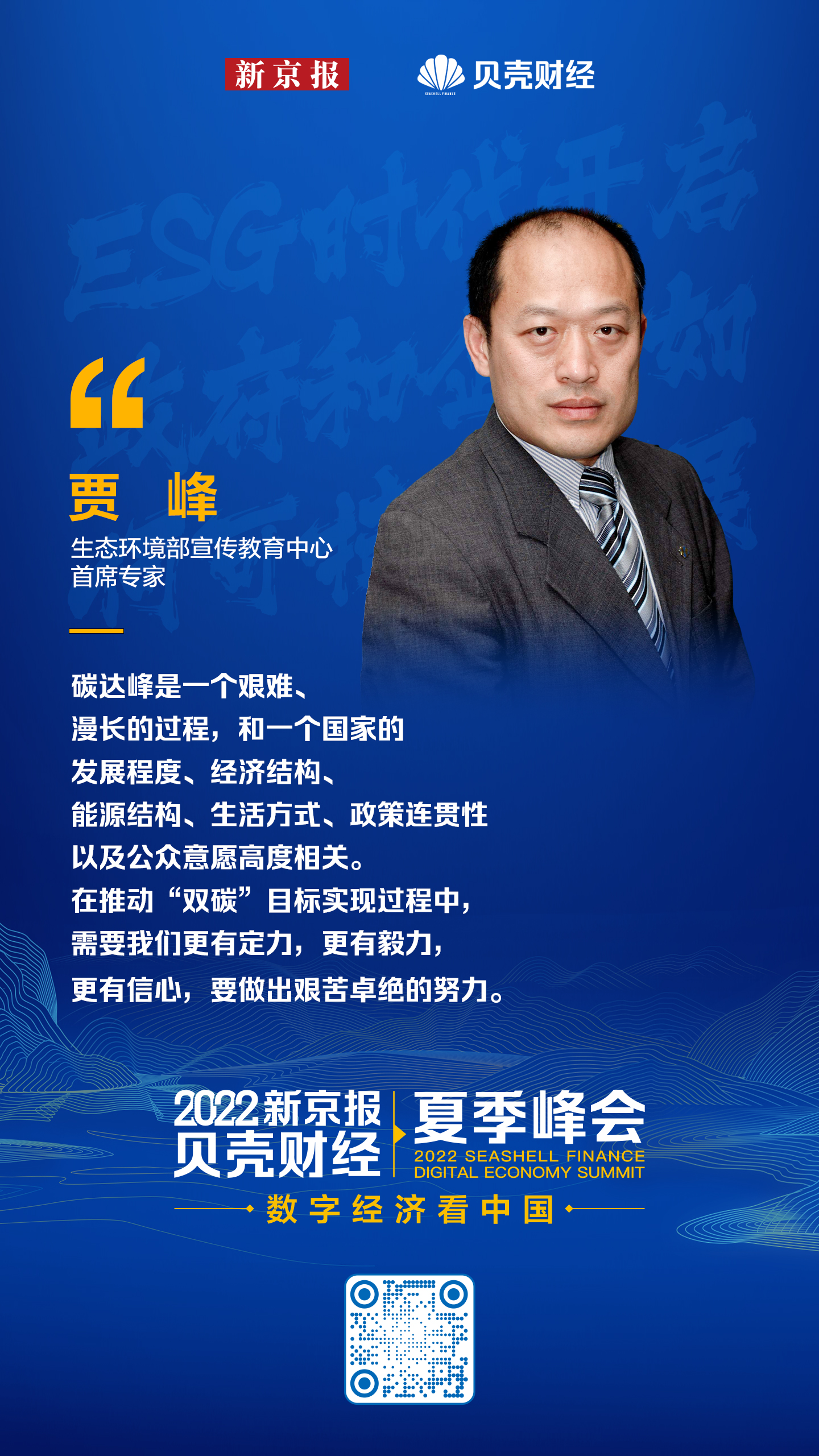 8月3日,2022新京报贝壳财经夏季峰会“先立后破,双碳助力美丽中国”主题论坛以在线形式举行。生态环境部宣传教育中心首席专家贾峰出席会议并发表主题演讲。