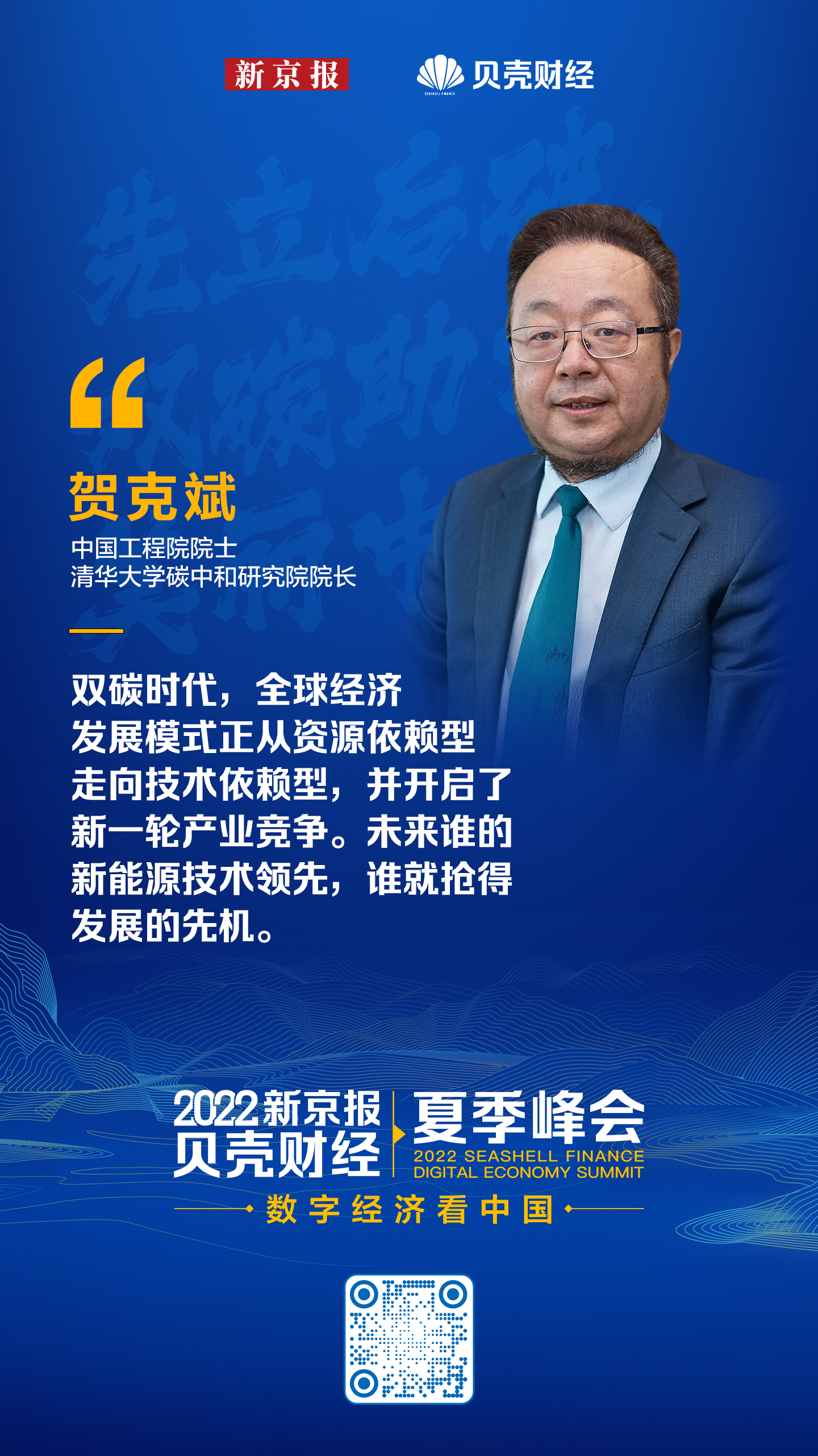 8月3日,在2022新京报贝壳财经夏季峰会“先立后破 双碳助力美丽中国”主题论坛上,中国工程院院士、清华大学碳中和研究院院长贺克斌发表了题为“碳中和与绿色高质量发展”的演讲。