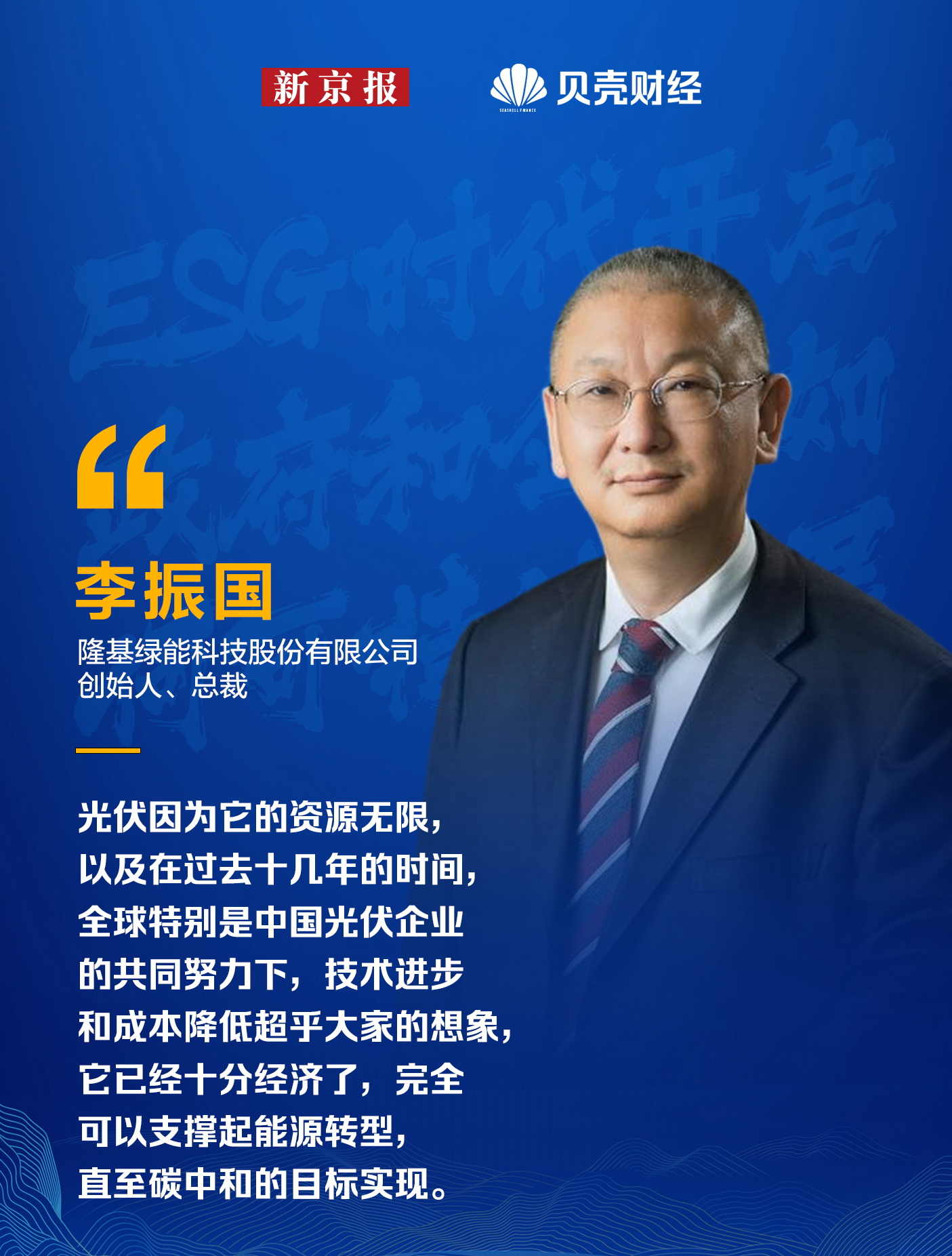 8月2日,2022新京报贝壳财经夏季峰会启动。峰会次日,围绕“先破后立,双碳助力美丽中国”议题,隆基绿能科技股份有限公司创始人、总裁李振国发表“光伏科技助力全球实现碳中和”为主题的演讲。