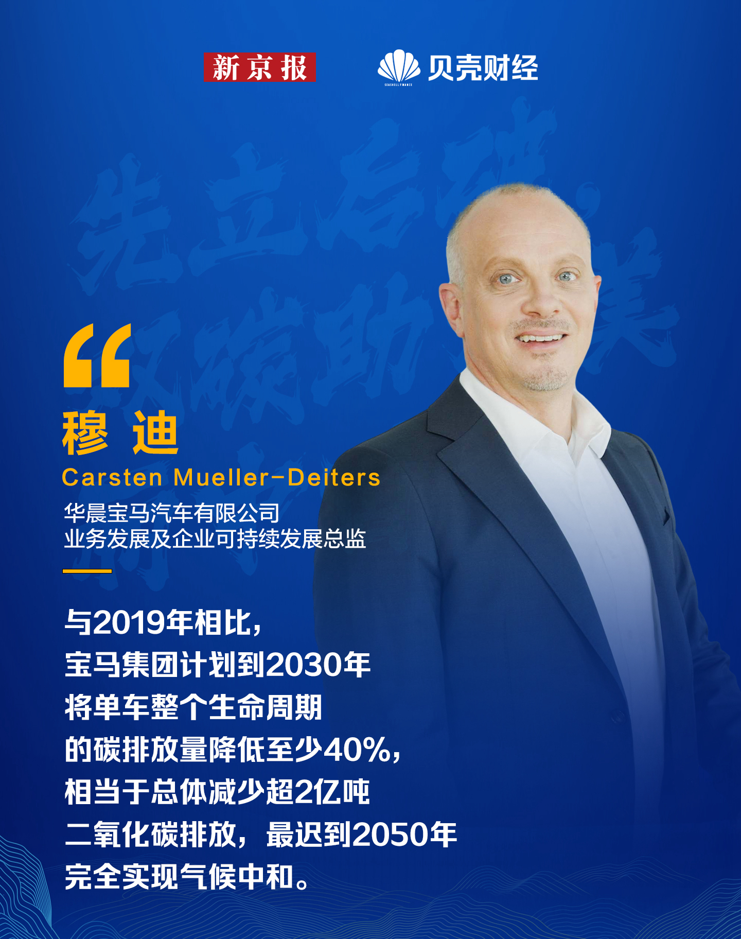 8月3日,华晨宝马业务发展及企业可持续发展总监穆迪在2022新京报贝壳财经夏季峰会——“ESG时代开启,政府和企业如何可持续发展”分论坛上透露,宝马集团已经设定清晰的碳减排目标,与2019年相比,到2030年将单车整个生命周期的碳排放量降低至少40%,相当于总体减少超过2亿吨二氧化碳排放;最迟到2050年,宝马集团计划完全实现气候中和。