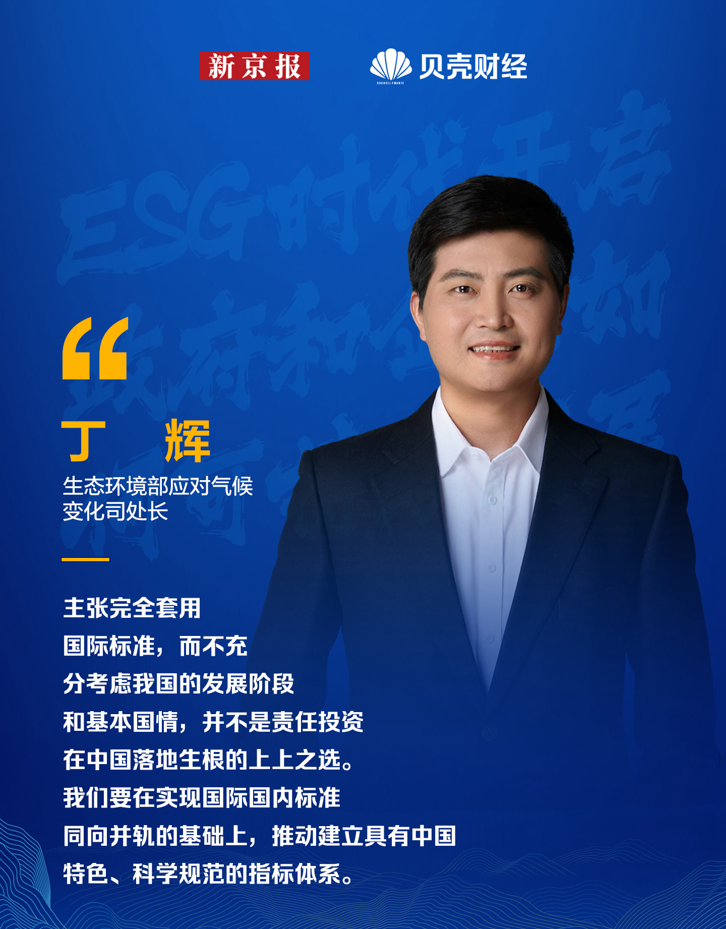8月3日,2022新京报贝壳财经夏季峰会“先立后破,双碳助力美丽中国”主题论坛以在线形式举行。生态环境部应对气候变化司处长丁辉在“中国ESG投资的前景与挑战”环节,发表主题演讲。
