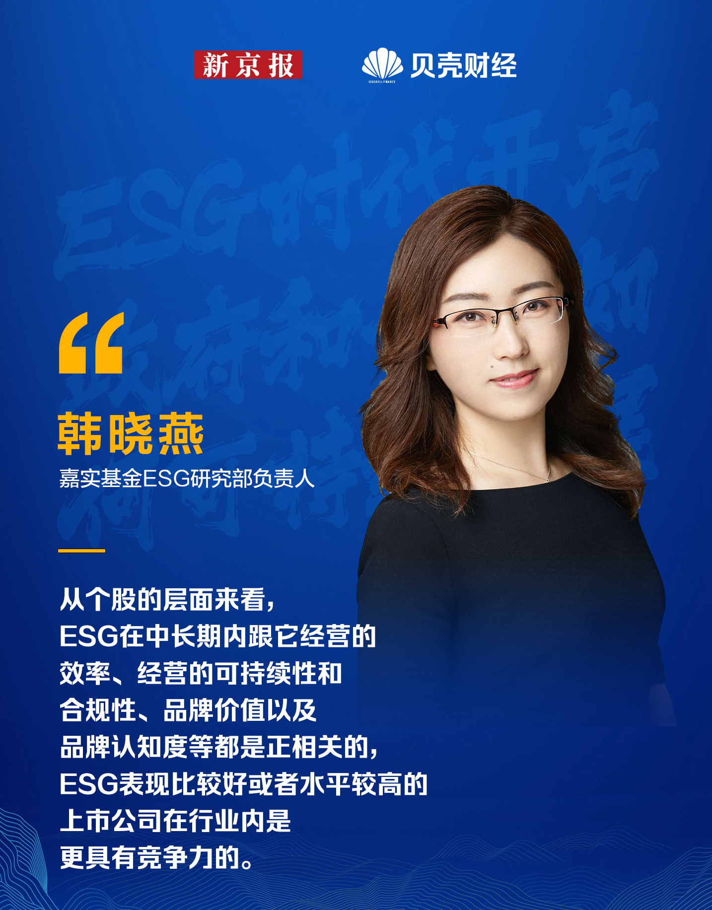 8月2日,2022新京报贝壳财经夏季峰会正式开幕。在本次峰会“中国ESG投资的前景与挑战”分论坛上,嘉实基金ESG研究部负责人韩晓燕指出,ESG投资是资本市场实现碳中和或者践行碳中和很好的工具。