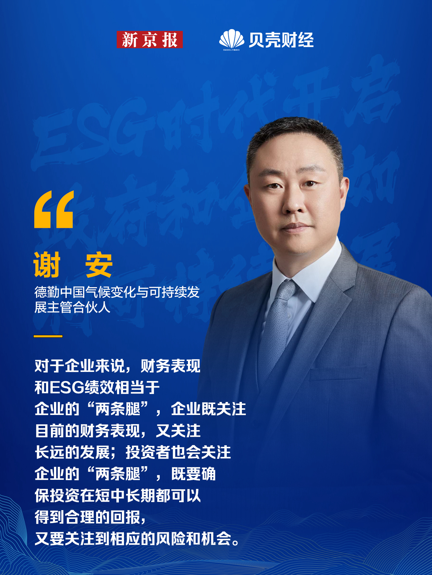 8月2日,2022新京报贝壳财经夏季峰会启幕。在本次峰会“中国ESG投资的前景与挑战”分论坛上,德勤中国可持续发展与气候变化主管合伙人谢安指出,ESG投资实际上是传统投资理念的升级版。对于企业来说,财务表现和ESG绩效相当于企业的“两条腿”,企业既关注目前的财务表现,又关注长远的发展;投资者也会关注企业的“两条腿”,既要确保投资在短中长期都可以得到合理的回报,又要关注到相应的风险和机会。阅读全文>>>