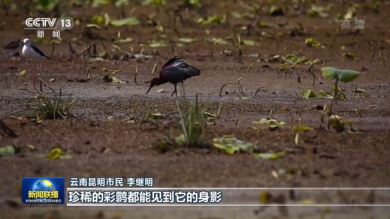 云南昆明市民 李继明:现在我们滇池水清了,草绿了,树也长起来了,珍稀的彩鹮都能见到它的身影。