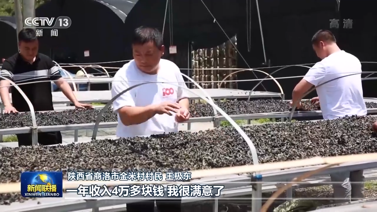 陕西省商洛市金米村村民 王极东:感谢党的好政策,我现在包的木耳大棚,一年收入4万多块钱,我很满意了。