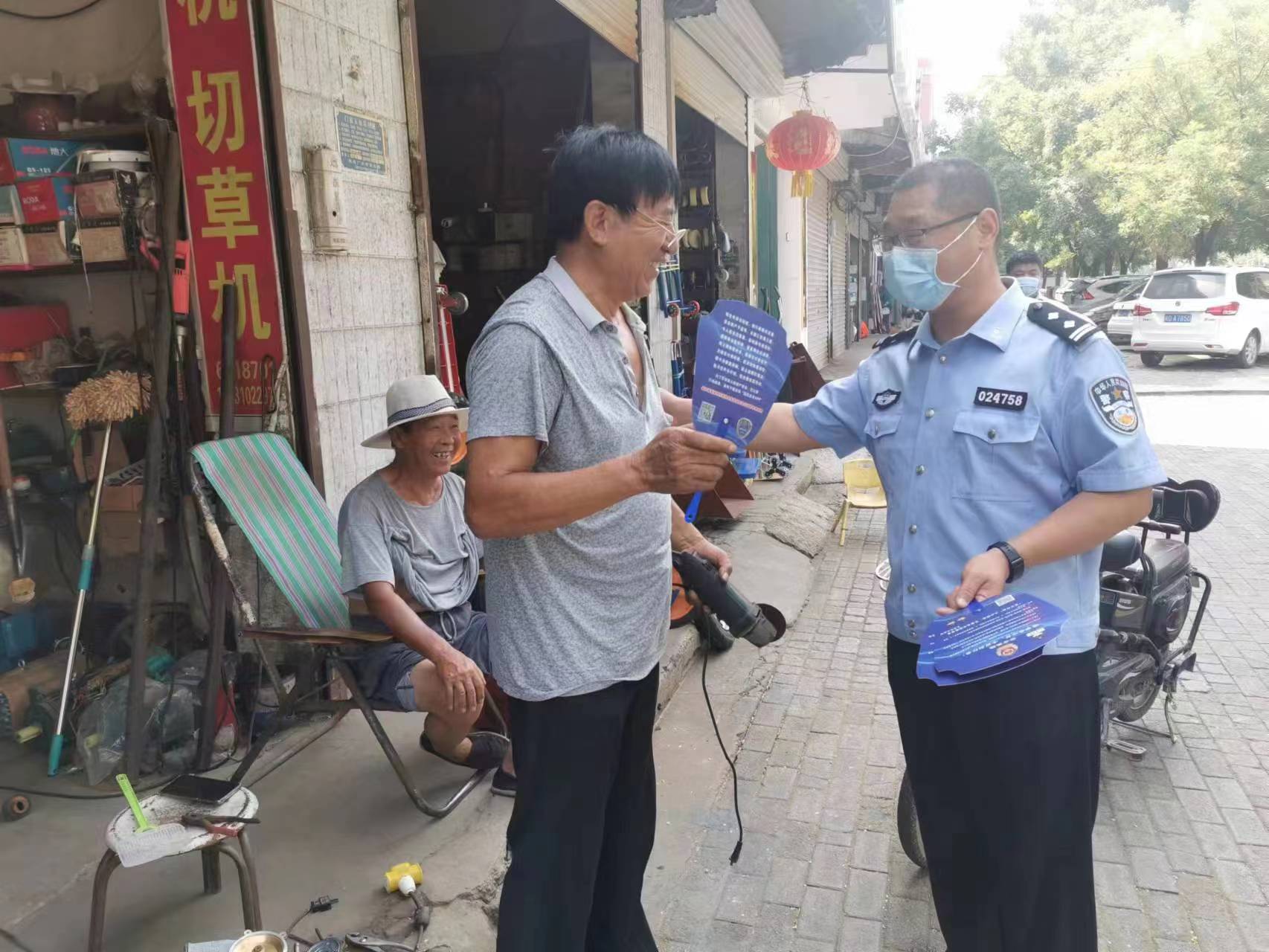 “广大村民们注意了,公安机关正在开展夏季治安打击整治‘百日行动’,大家要提高安全防范意识,发现有可疑人员、可疑隐患等异常情况及时向我们报告。”每到傍晚,这样的喇叭声就会在各乡镇的街道上响起,志愿者巡逻队一边步巡,一边宣传“百日行动”。同时还为村民普及法律常识,宣传反诈知识。同时,巡逻队的民警、辅警、志愿者们,还会不间断地深入辖区展开普法活动,他们还制作了扇子等小礼品,免费送给居民,扇子上一面写着:遇事要冷静,千万别打架。另一面印着反诈常识,告诉居民遇到陌生来电要多提防、多核实,扇面上还有“国家反诈中心APP”的二维码,可供居民随时下载。