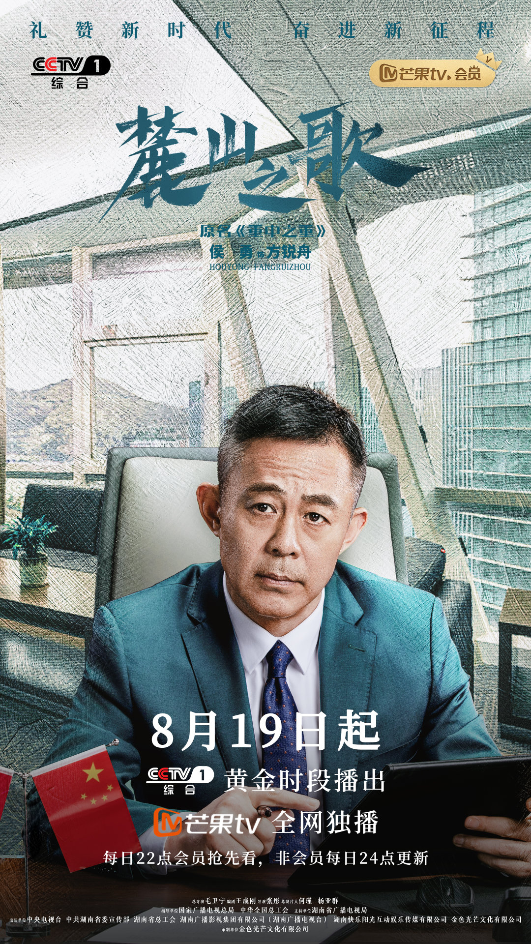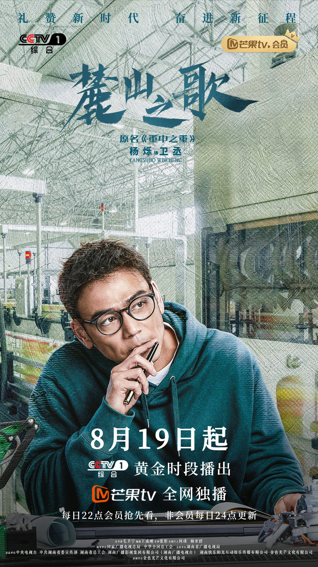 新京报讯 由杨烁、侯勇、焦俊艳、颖儿、夏德俊等主演的当代重工制造业剧《麓山之歌》官宣定档,将于8月19日起,在CCTV-1黄金时间播出,芒果TV全网独播,每日22点会员抢先看,非会员每日24点更新。