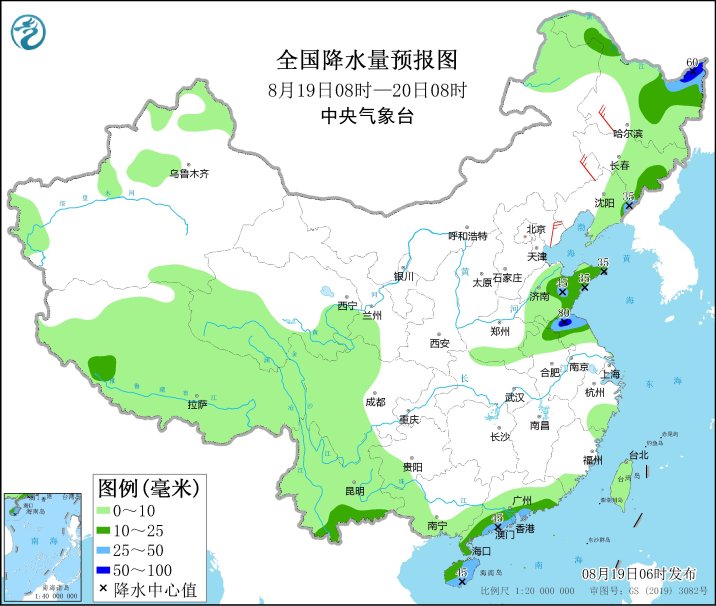 预计今天白天到夜间,北方本轮降雨接近尾声,黑龙江东北部、吉林东南部、辽宁东北部、山东半岛、江苏北部等地的部分地区有中到大雨,其中,黑龙江东北部、江苏北部等地局地有暴雨。