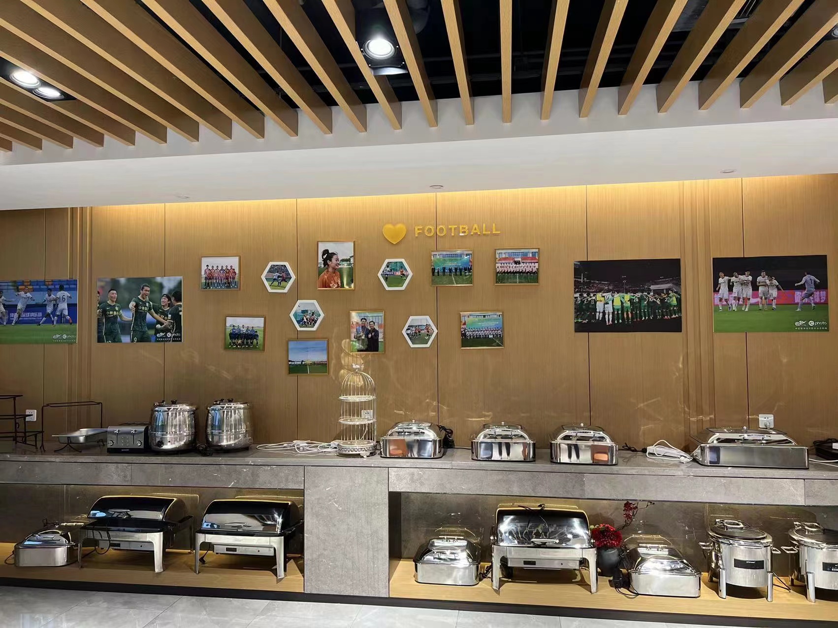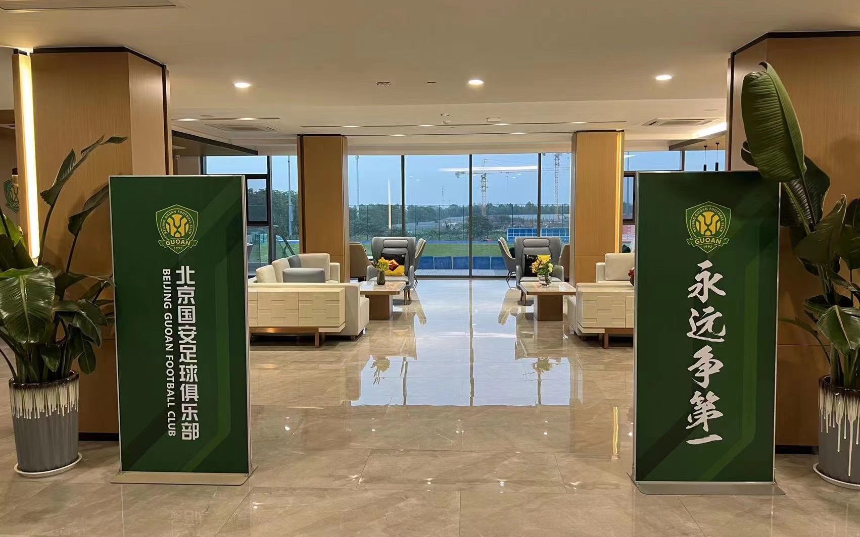 为了让球队更直观地感受到主场氛围,国安俱乐部前方团队一项重要工作内容就是将国安元素布置在赛场、更衣室及餐厅等处。日照国际足球中心的看台上已经挂起印有“永远争第一”的巨幅TIFO,餐厅墙壁上可以看到国安比赛和球迷助威的照片,令球队真正有回家的感觉。