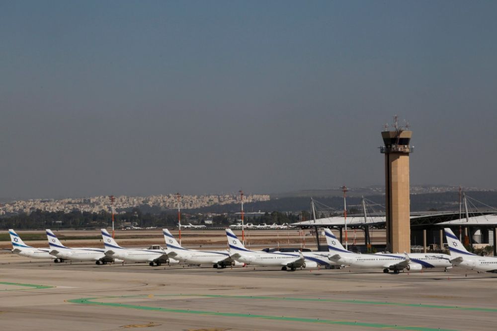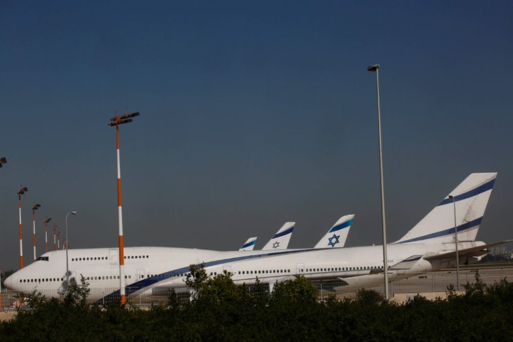 这是2021年1月24日在以色列本-古里安国际机场拍摄的以色列航空公司班机。新华社发(吉尔·科恩·马根摄)
