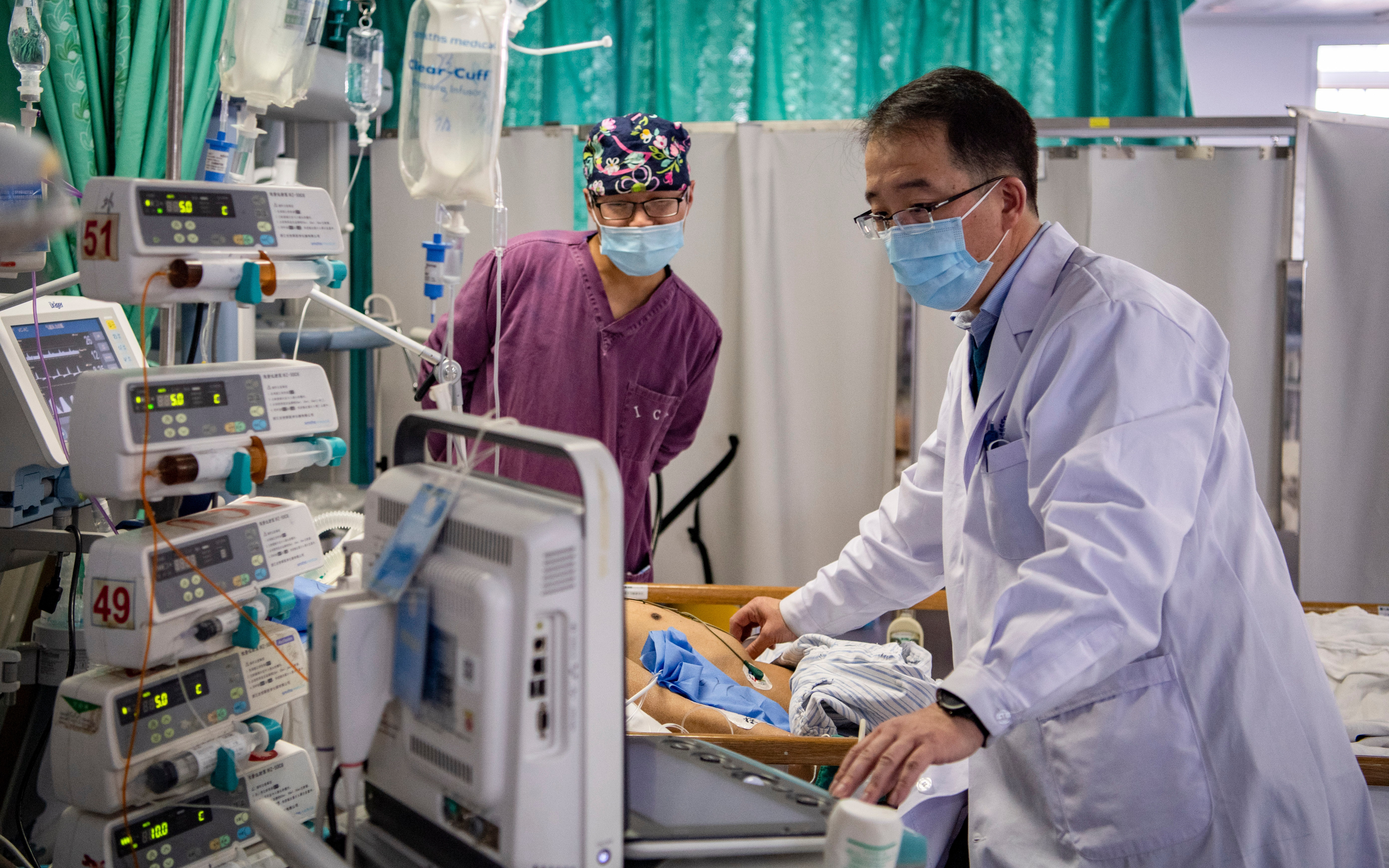 ▲援藏医生在西藏自治区人民医院病房为病人做重症超声评估。资料图。图/新华社