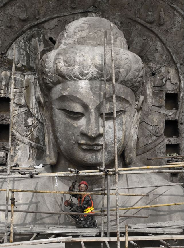 这次奉先寺渗漏水治理与保护工程是抢救性修复,同时又同步以考古发现和数据采集,为下一步制定龙门石窟整体5-10年的保护规划提供依据。依托脚手架,一架三用,是史家珍的创新之举。