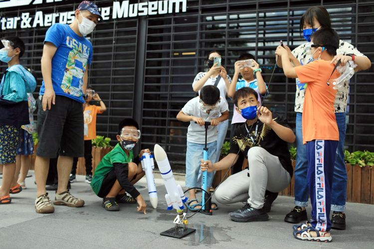 8月26日,科普老师介绍火箭知识。