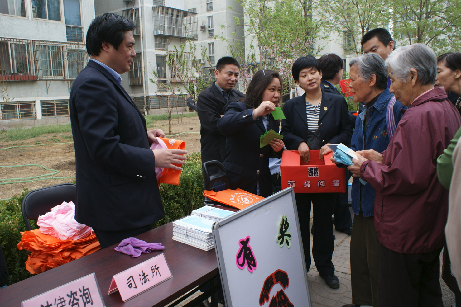 罗胤(左三)带着同事深入社区,为老年居民提供法律咨询和普法服务。受访者供图