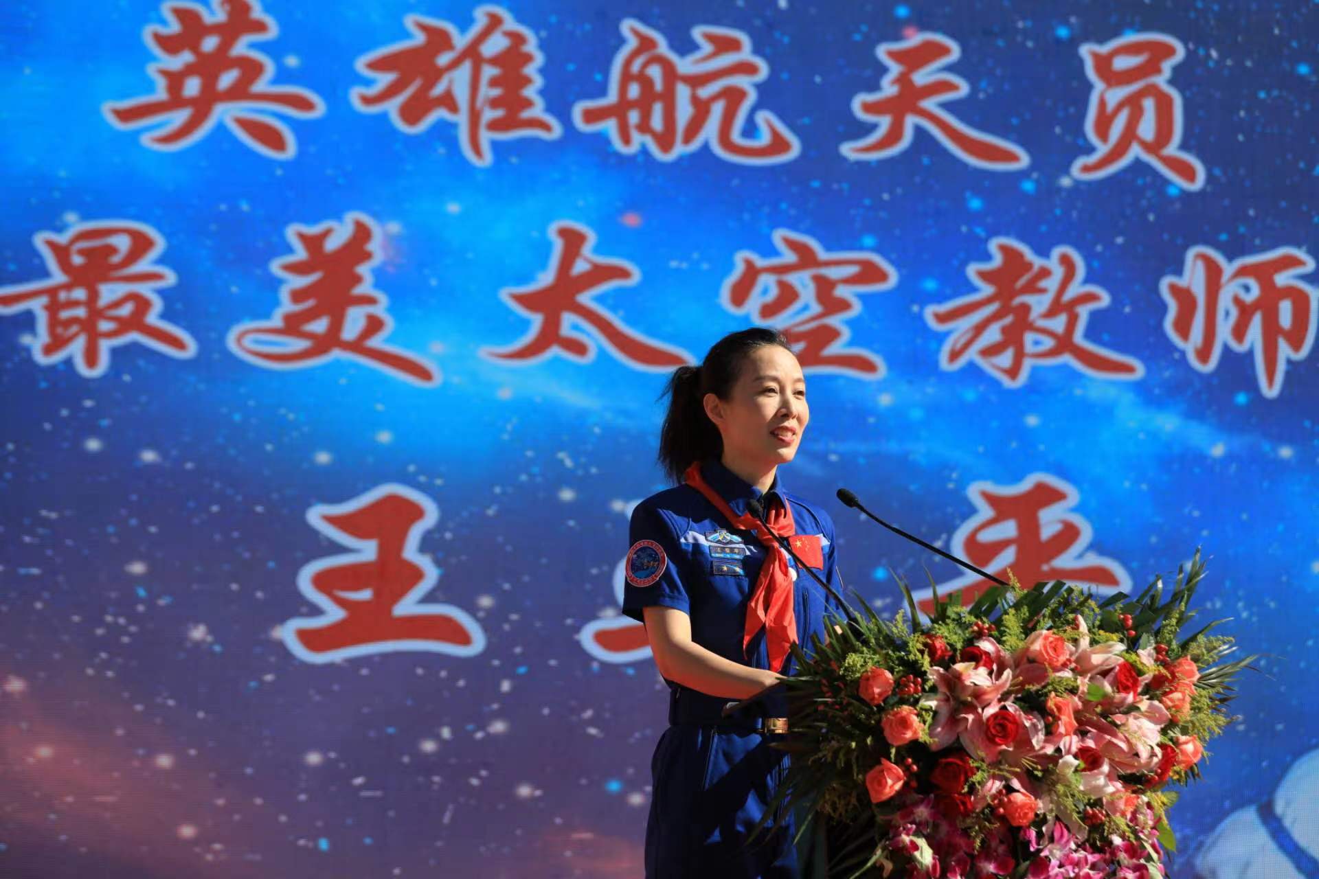 新京报讯(记者吴为)今天(9月1日)上午,首都师范大学附属小学全体师生在开学典礼上迎来了有“摘星星的妈妈”之称的航天英雄王亚平。在这场主题为“童心永向党,共筑航天梦”的开学典礼上,王亚平给孩子们上了开学第一课。