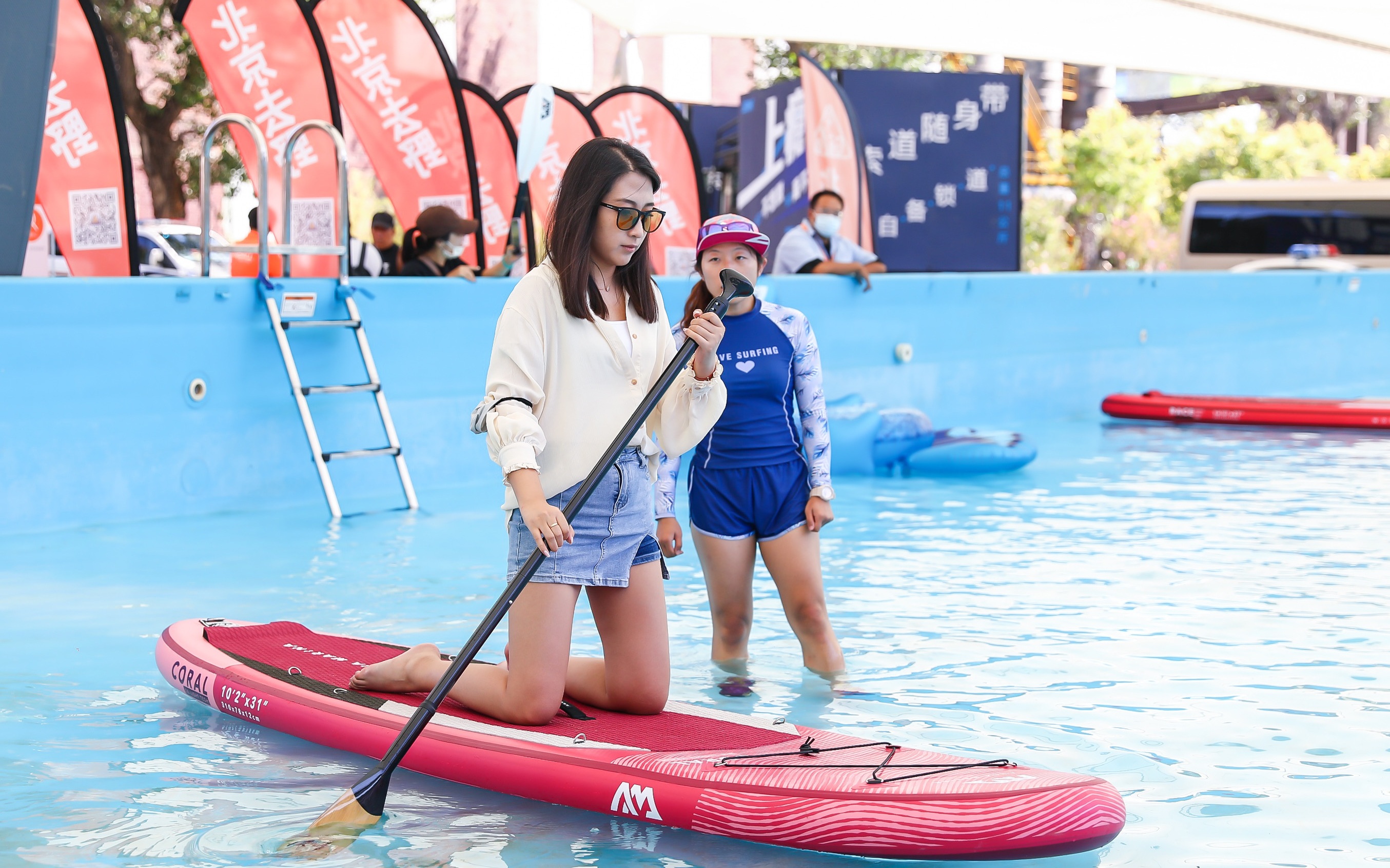 在体育服务展区观众可现场体验桨板。 主办方供图
