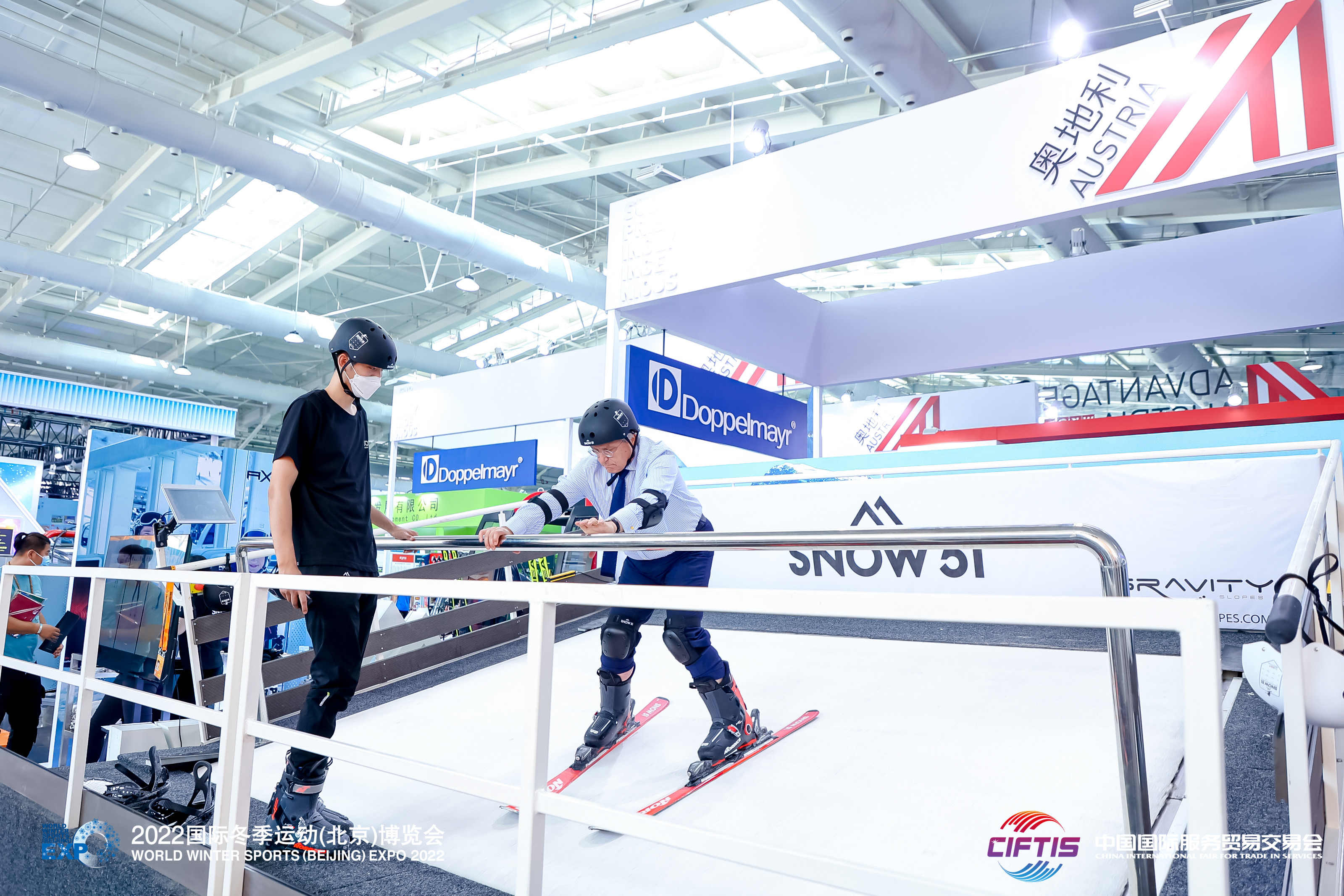 在体育服务展区观众可现场体验滑雪。 主办方供图