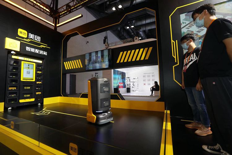 9月1日,国家会议中心一期展馆,美团智能配送站。
