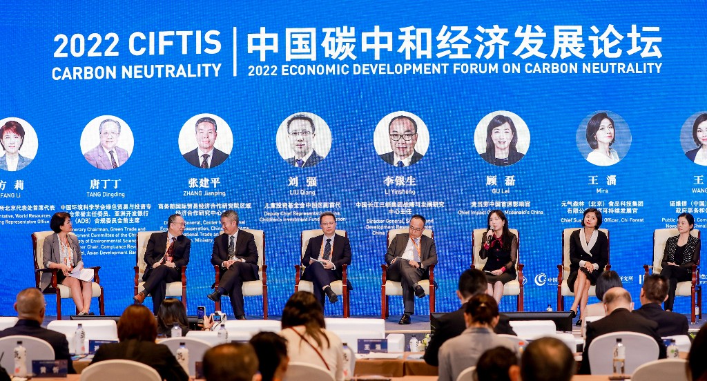 麦当劳中国首席影响官顾磊(右三)参加“2022中国碳中和经济发展论坛”。受访者供图
