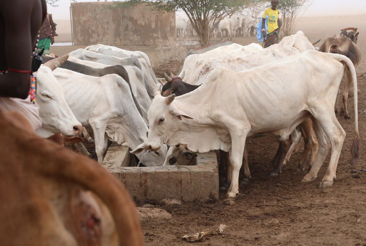 该郡莱萨米斯地区的一处大型饮水点,是地区内约1000名牧民和数万头牲畜赖以生存的水源。大批牛群和羊群从各方赶赴这里,牧民们不断使用长棍驱赶牲畜以维持秩序。